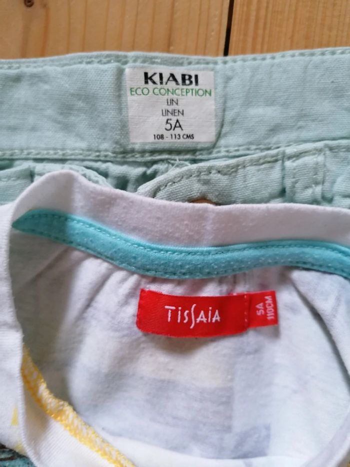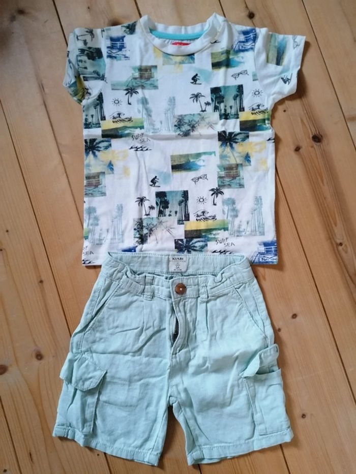 Short en lin kiabi vert d'eau et t-shirt manches courtes tissaia. Peu porté. 5 ans #hanna9889garçon5ans