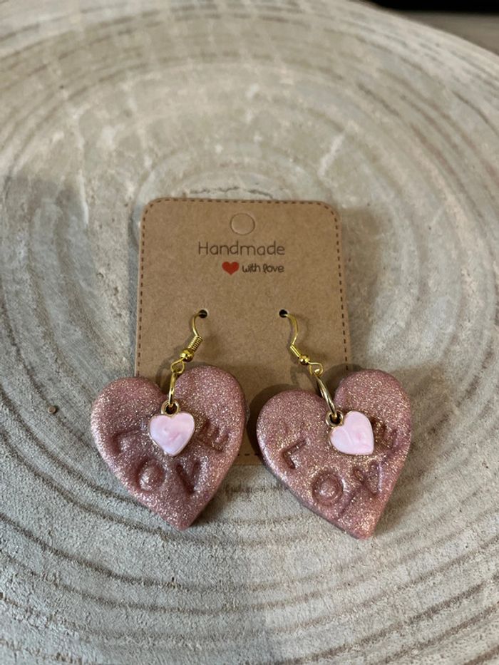 Boucles d oreilles fimo rose en forme de cœur