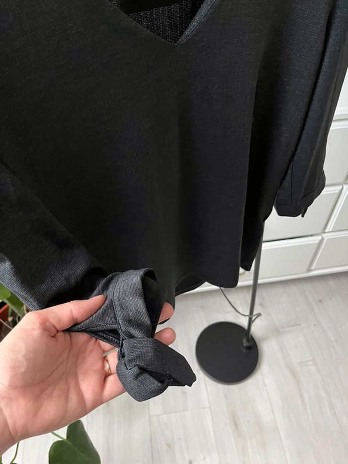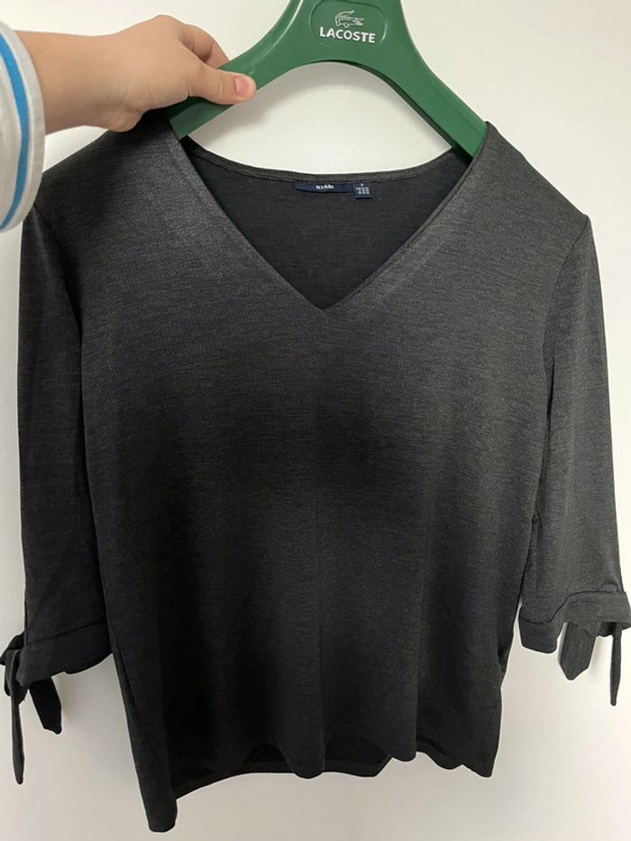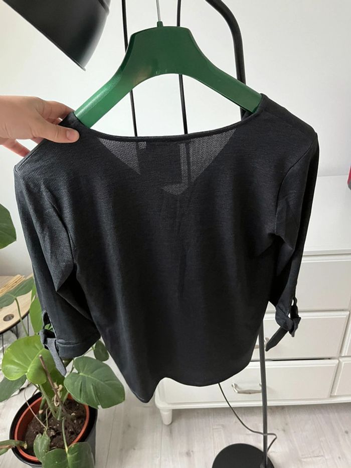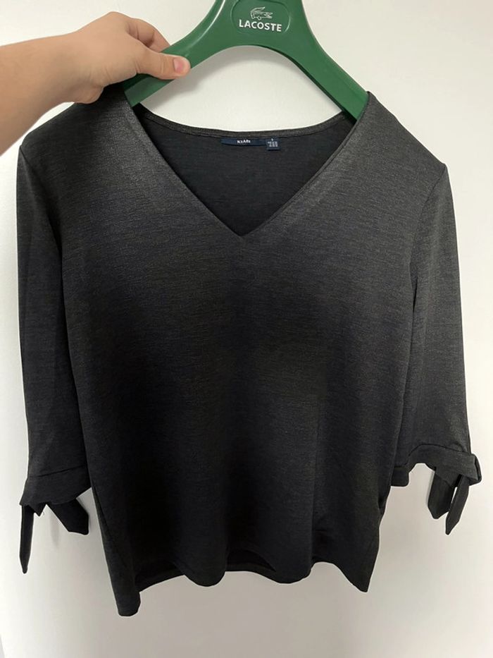 Bonjour, Je vends ce sublime haut noir de chez Kiabi, manche 3/4 avec un petit noeud à la manche. Col v Taille S, en excellent état. #colv #kiabi #tailleS #haut #noeud #noir