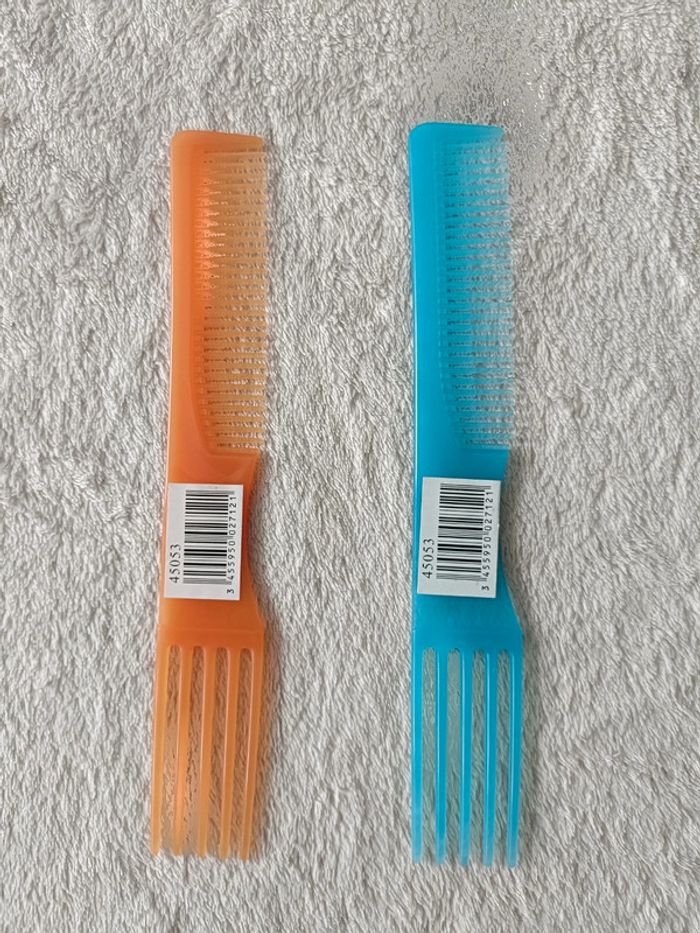 2 peignes (orange et turquoise)