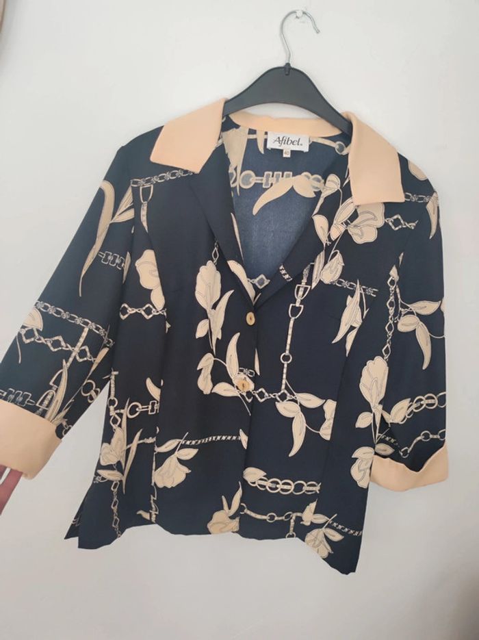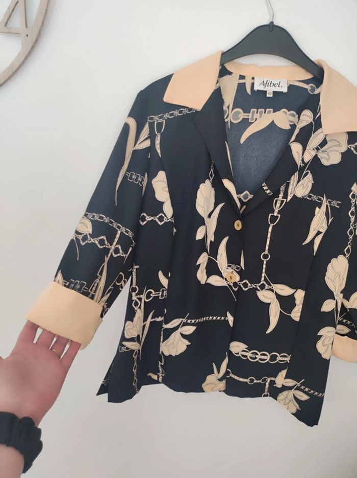 Chemise noire et beige Afibel taille 40. #elomatfemme40