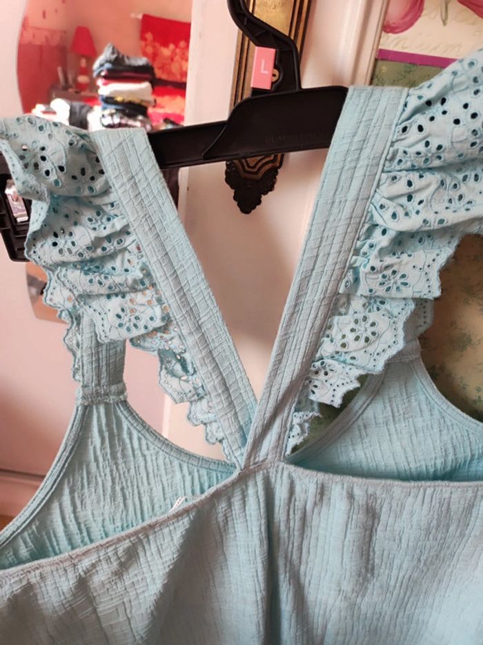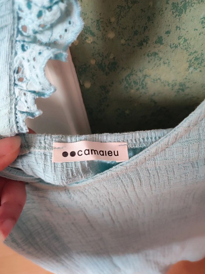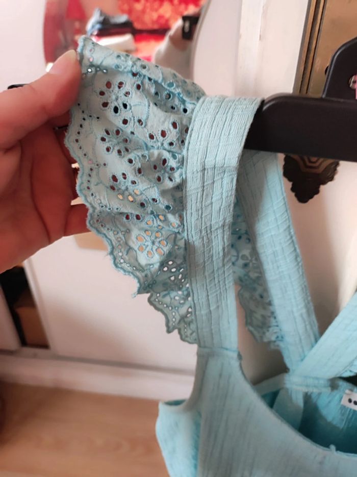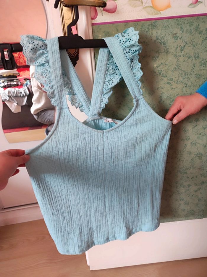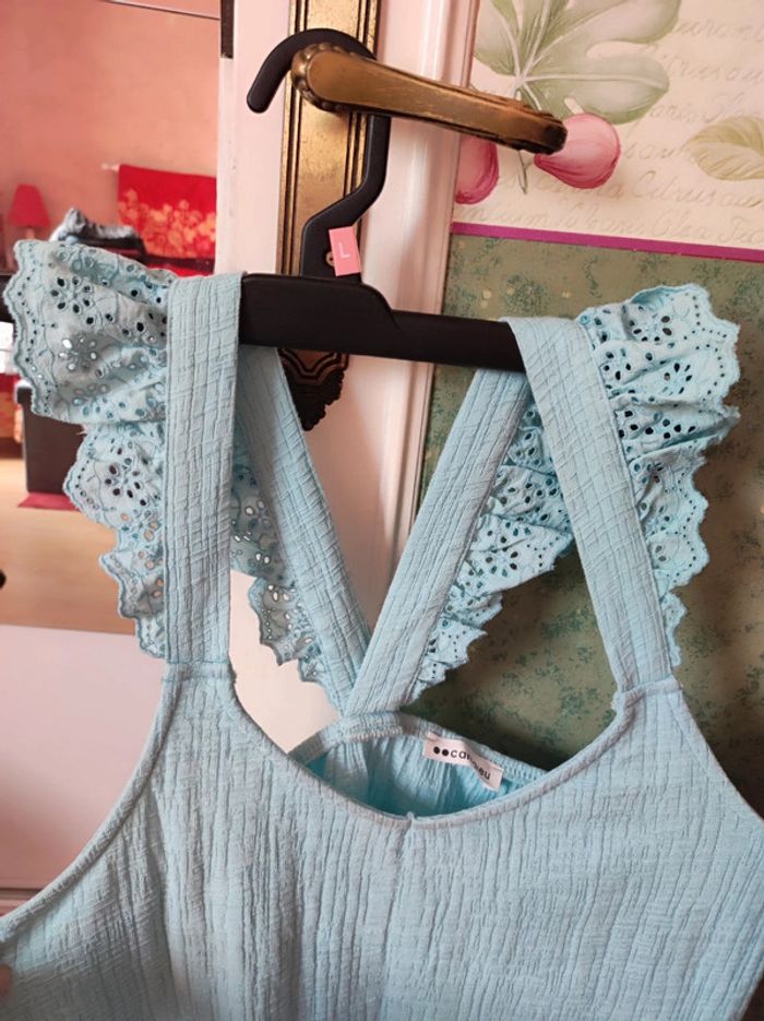 Beau haut bleu clair croisé à l'arrière. T.M #elomatfemme38