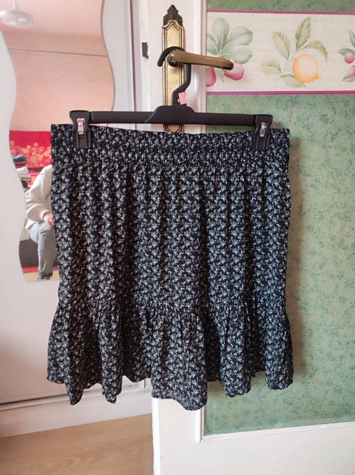 Belle jupe noire à motif. Taille élastique. T.40 #elomatfemme40