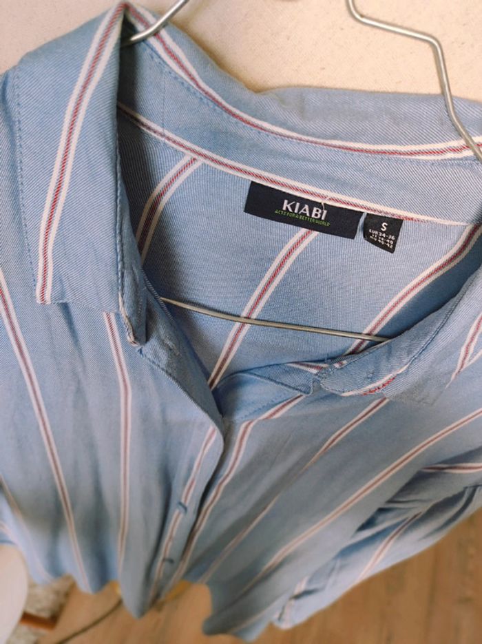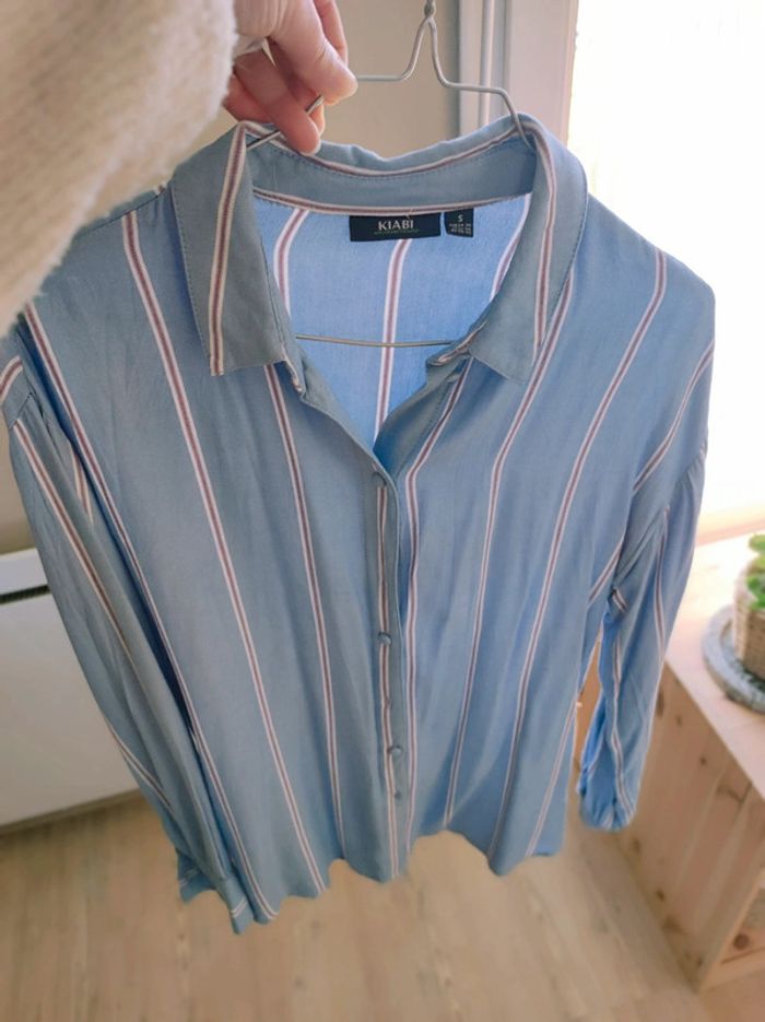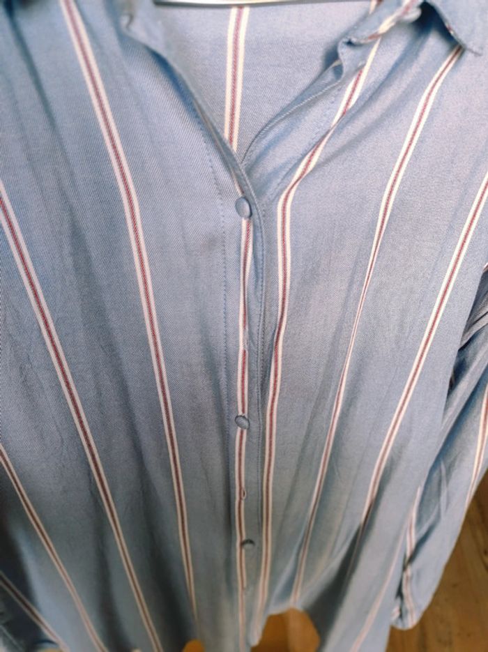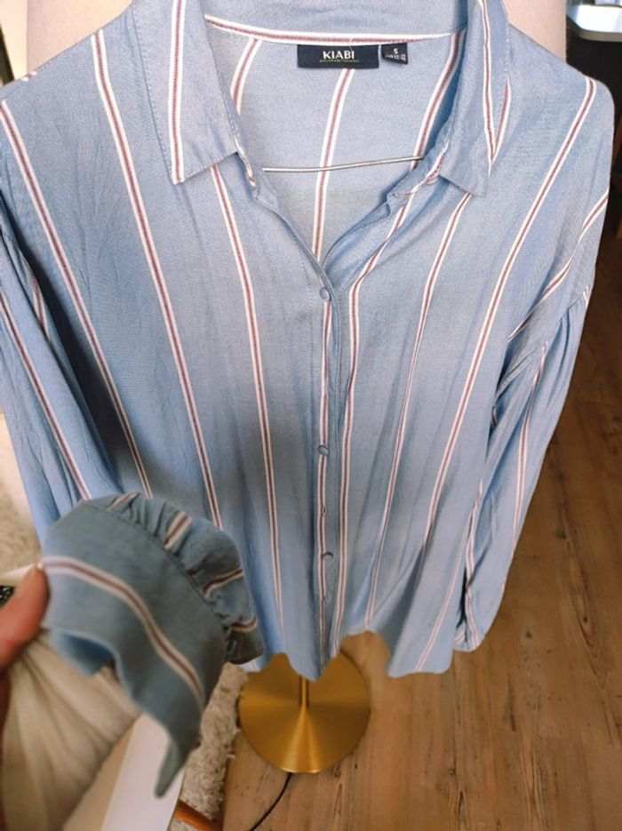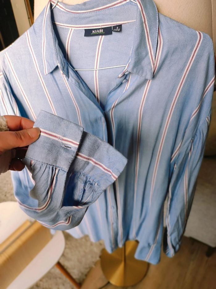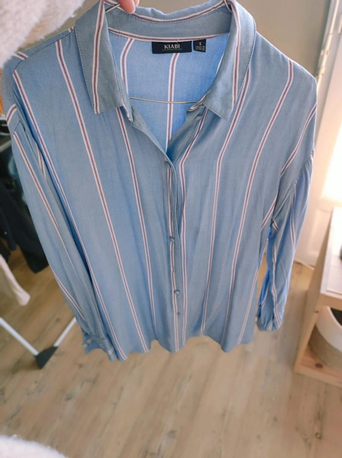 Chemise bleue a rayures bordeaux. Neuf sans étiquette T.S (36/38) Kiabi #elomatfemme36 #elomatfemme38