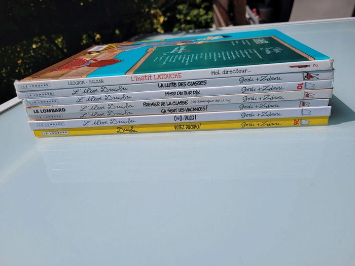 BD DUCOBU Tome 4 : La Lutte des Classes Tome 10 : Miss Dix sur Dix (71) Tome 14 : Premier de la classe (en commençant par la fin) 55 Tome 15 : Ça sent les vacances ! (65) Tome 20 : 0+0 = Ducobu Tome 26 : Votez Ducobu ! (33) L'instit Latouche tome 2 : Moi Directeur... Seuls les coins du tome 10 sont abîmés, un léger petit défaut sur la couverture du 4 sinon en très bon état Mes autres BD : #bdmooglou
