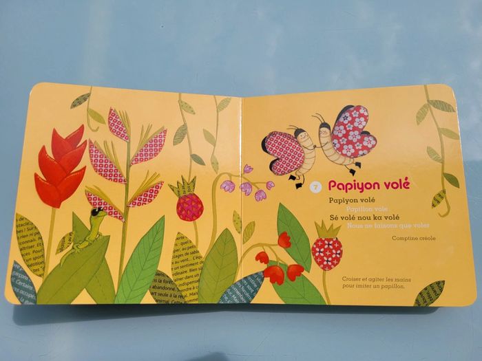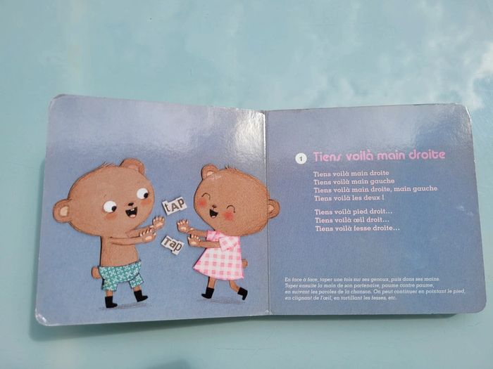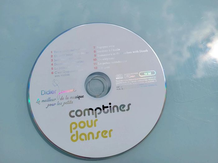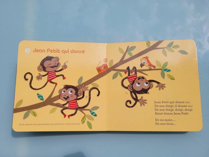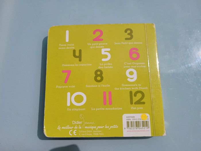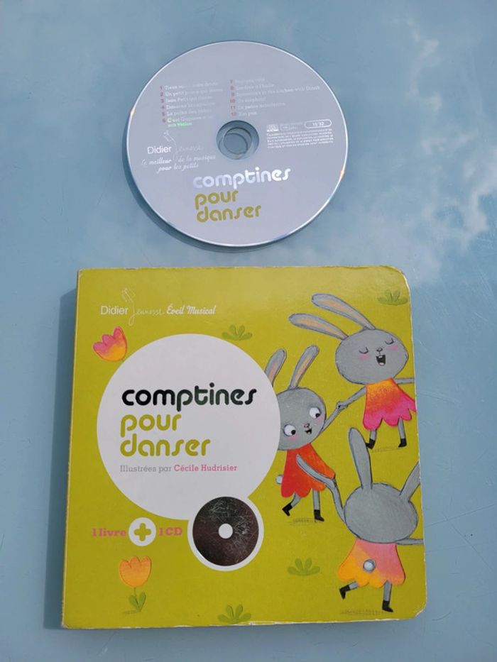 DIDIER JEUNESSE LIVRE AVEC CD COMPTINES POUR DANSER « Tiens, voilà main droite », « Un petit pouce qui danse », « C’est Gugusse », « Jean petit qui danse »… douze comptines joyeuses pour jouer, faire la fête, faire sauter les plus jeunes sur les genoux. Une musique rythmée et des chansons en français, en anglais et même en créole pour se trémousser dans toutes les langues. Couverture un peu usée par endroits, mais très bon état général, le CD fonctionne très bien Mes autres livres avec CD : #livrecdmooglou #livresonoremooglou Mes autres livres de comptines : #livrecomptinesmooglou Mes autres livres enfants : #livreenfantmooglou