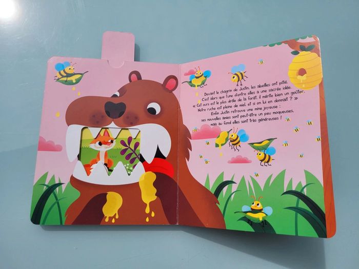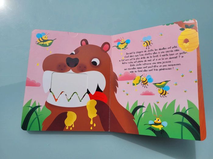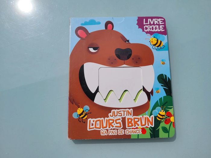 JUSTIN L'OURS BRUN N'A PAS DE CHANCE LIVRE CROQUE Justin l'ours brun est la risée de la forêt : où qu'il aille, quoi qu'il fasse, il finit par se blesser. La chance n'est vraiment pas de son côté ! Mais il va pouvoir compter sur un soutien inespéré... Oseras-tu mettre tes doigts ? Très bon état Mes autres livres enfants : #livreenfantmooglou