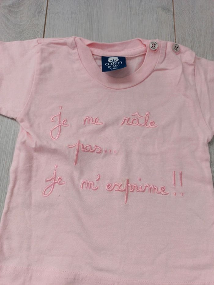 Joli tee shirt rose avec message " je ne râle pas...je m'exprime !!", Taille 12 mois. 100% coton. #ccj1367fille12mois #cotonblanc