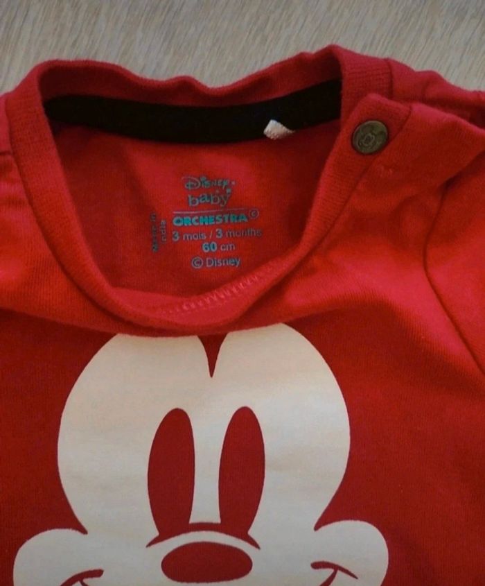 Tee shirt manches courtes Orchestra taille 3 mois, 60 cm. Neuf, jamais porté, juste lavé mais présence d'un petit trou causé par l'étiquette de prix en magasin (voir photo). #ccj13673mois #mickey #mickeymouse #mickeymousedisney #disneybaby