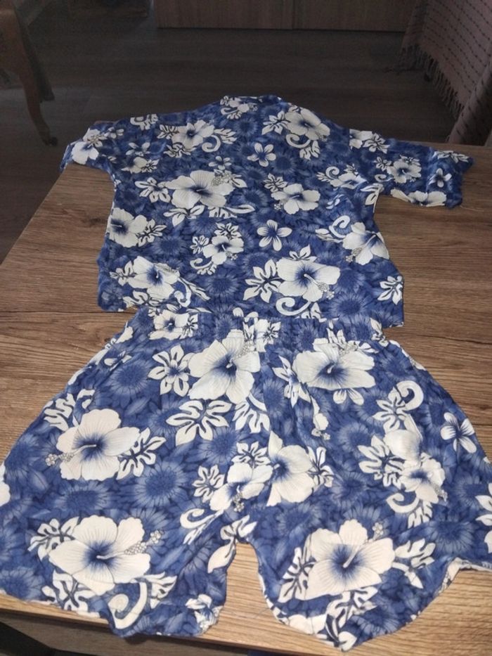 Bonjour, je vends cette ensemble chemise et short bleu à fleurs blanches taille 4ans en très bon état. Lavé maison non fumeur.