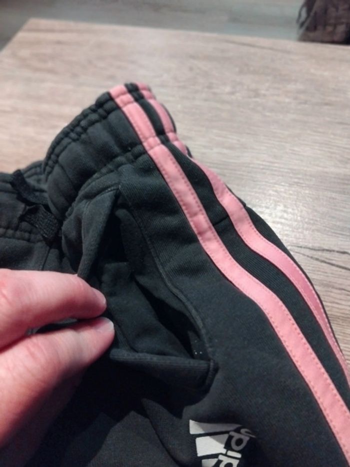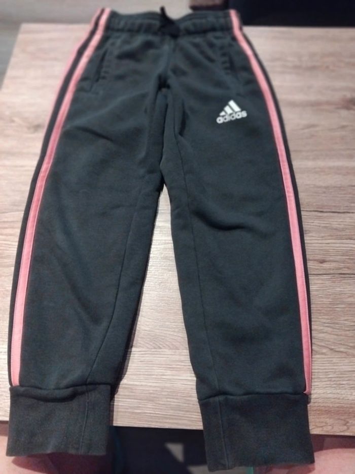 Bonjour, je vends ce bas de jogging noir et rose de la marque adidas taille 6ans en très bon état. Lavé maison non fumeur.