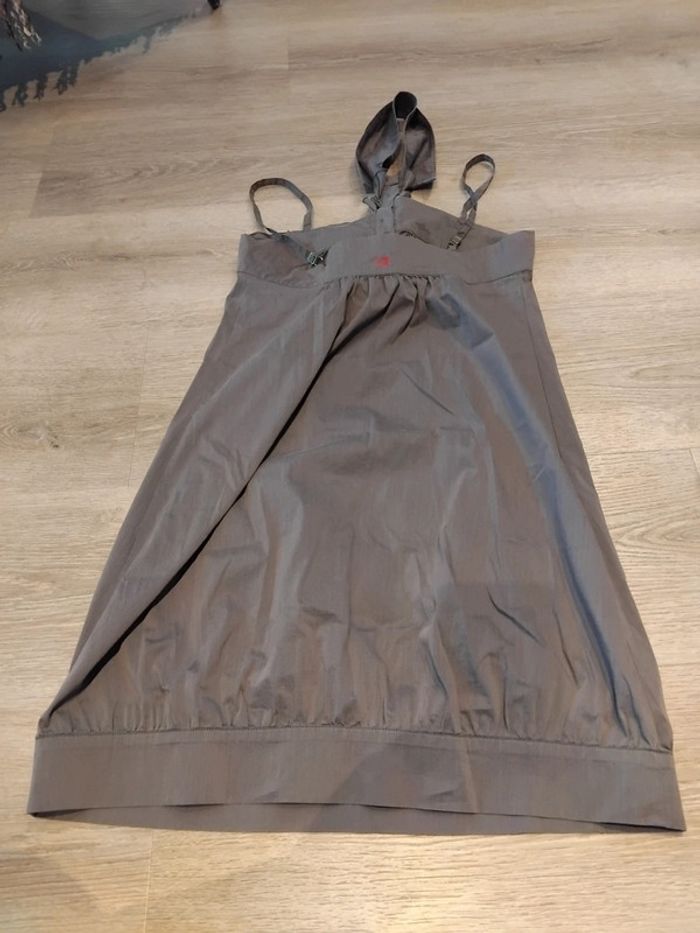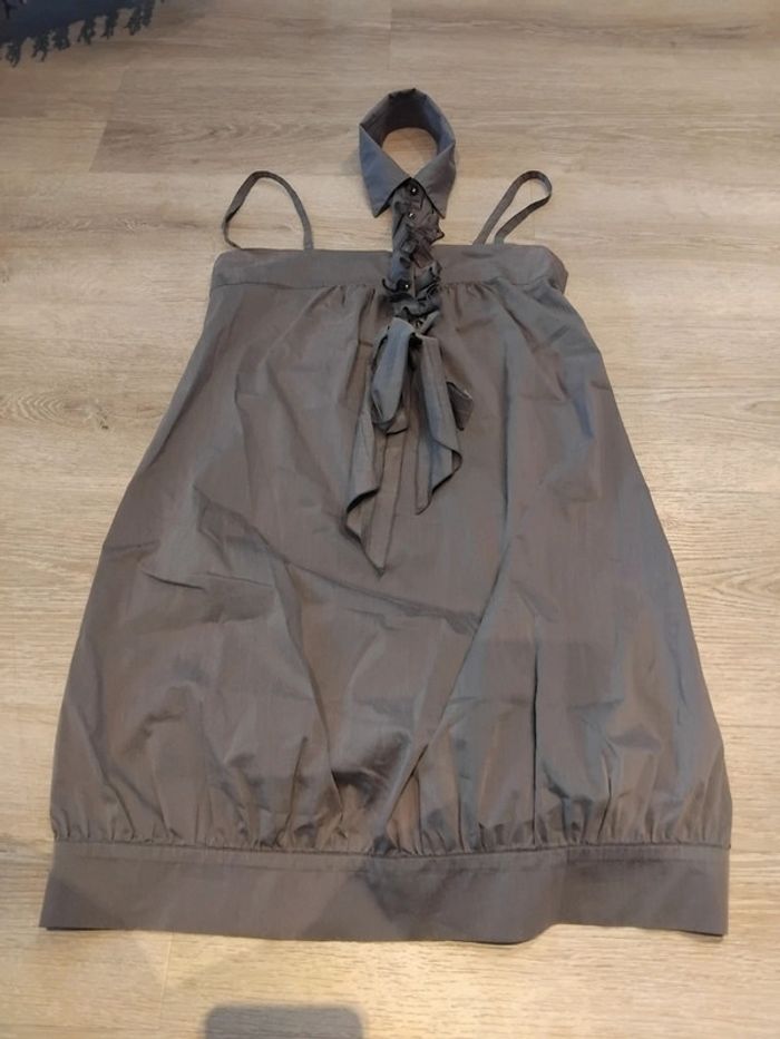 Bonjour, je vends cette robe à bretelles avec une partie à passer autour du cou grise de la marque cop copine taille M en très bon état. Lavé maison non fumeur.