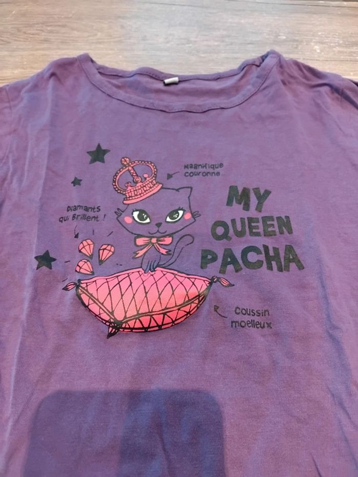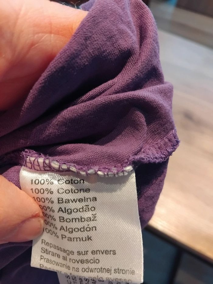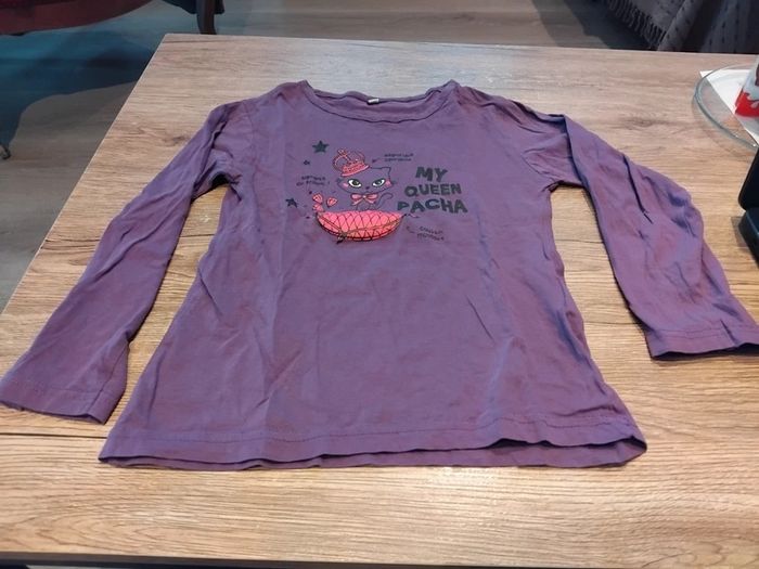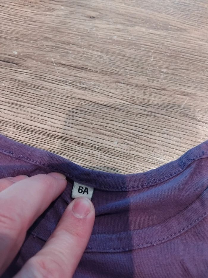 Bonjour, je vends ce tee shirt violet motif chat en très bon état taille 6ans.