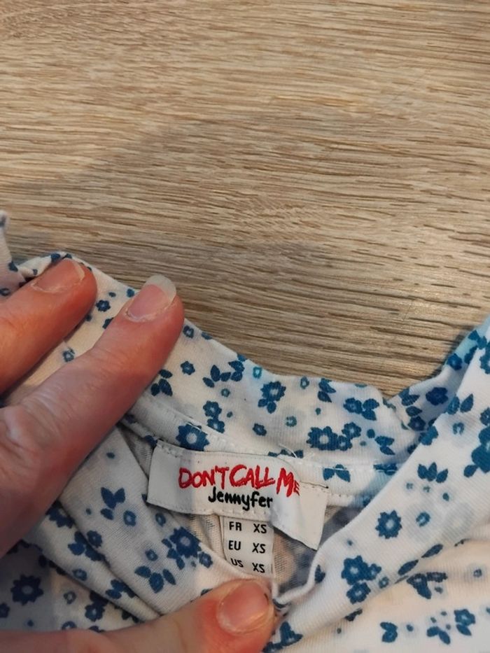 Bonjour, je vends ce crop top blanc fleurs bleues à manches courtes de la marque Jennyfer taille XS en très bon état. Lavé maison non fumeur.