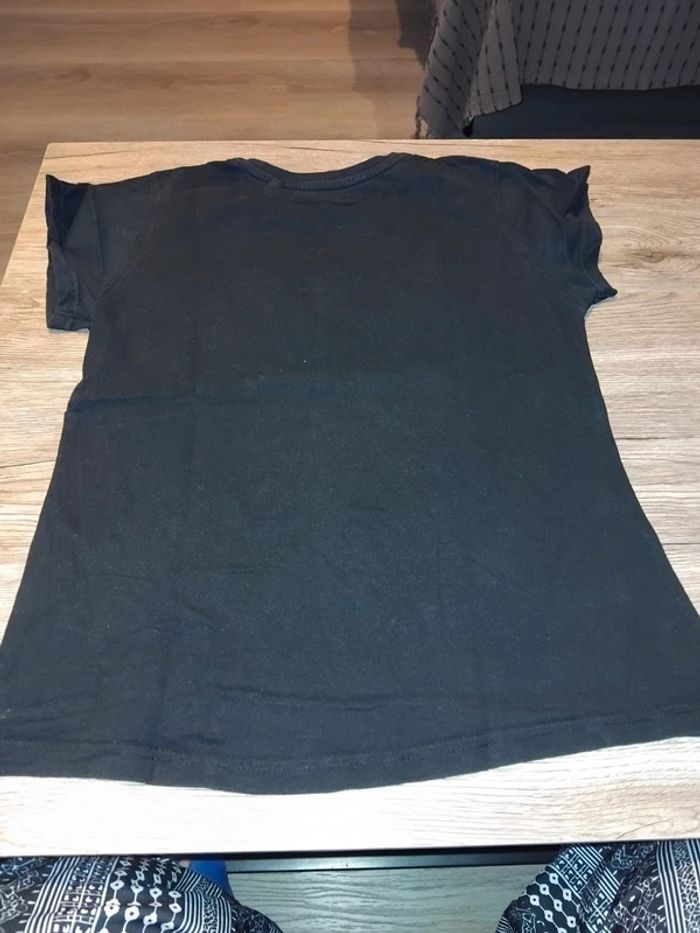 Bonjour, je vends ce tee shirt noir avec motifs de la marque Primark taille 11ans en très bon état. Lavé maison non fumeur.