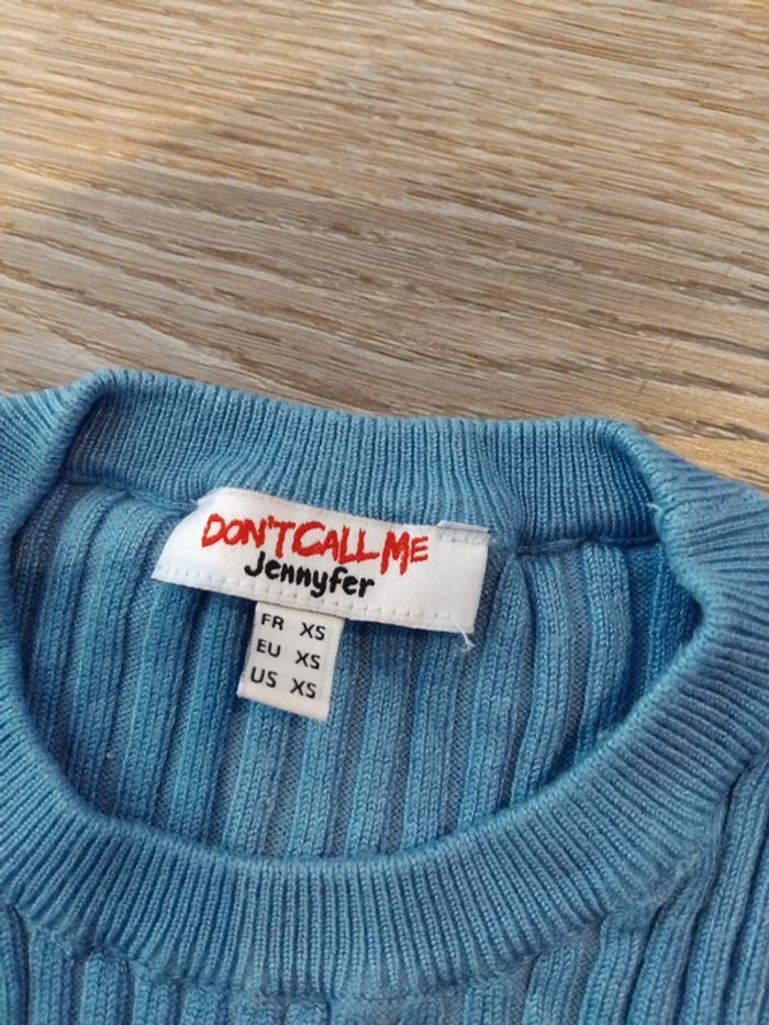 Bonjour, je vends ce crop top bleu a manches courtes de la marque Jennyfer taille XS en très bon état. Lavé maison non fumeur.