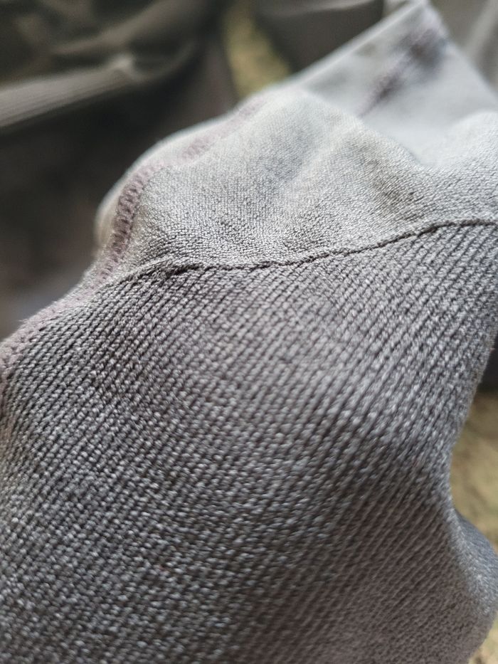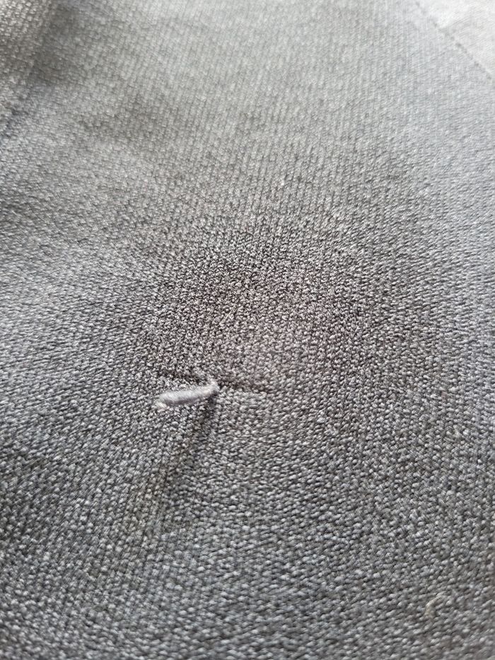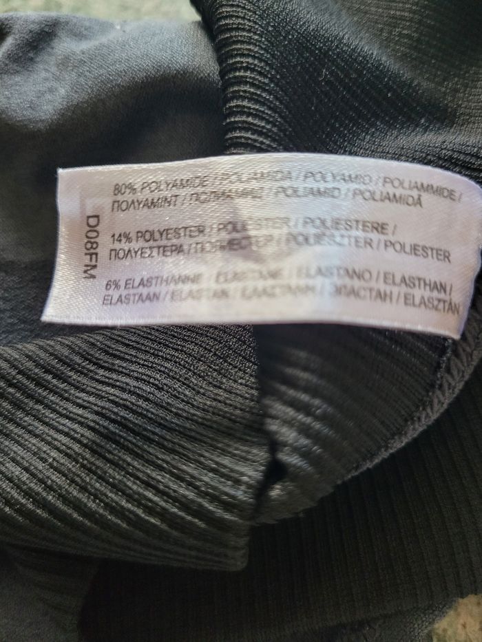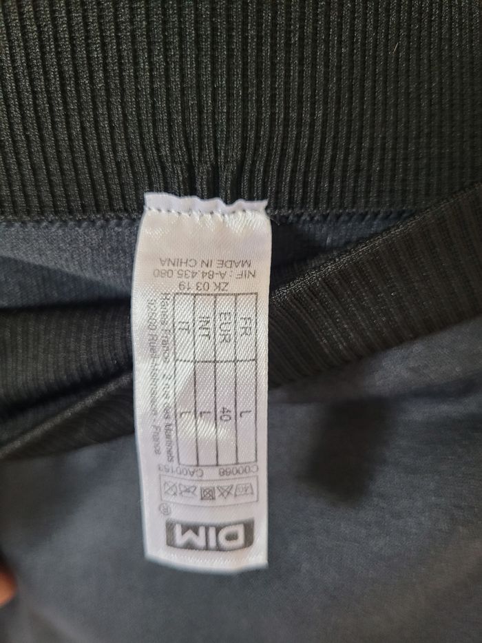 Taille L Taille élastique (36 cm sans étirer) Gris et noir Quelques petits tirés mais reste en très bon état Haut en bas 88 cm
