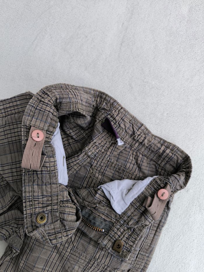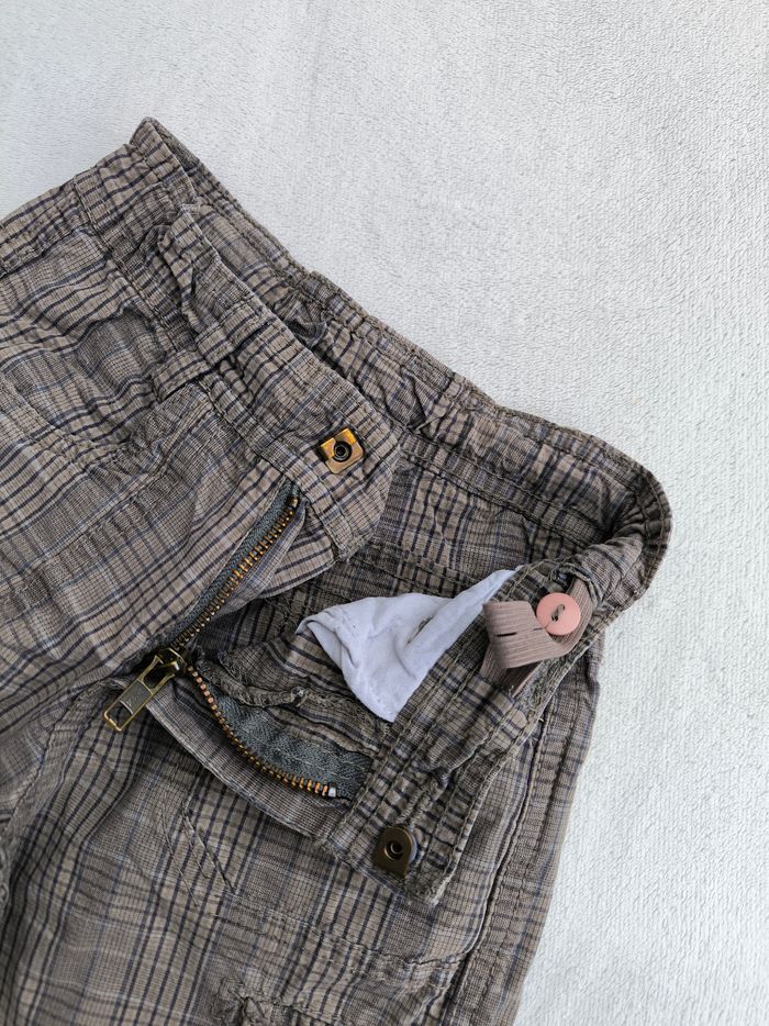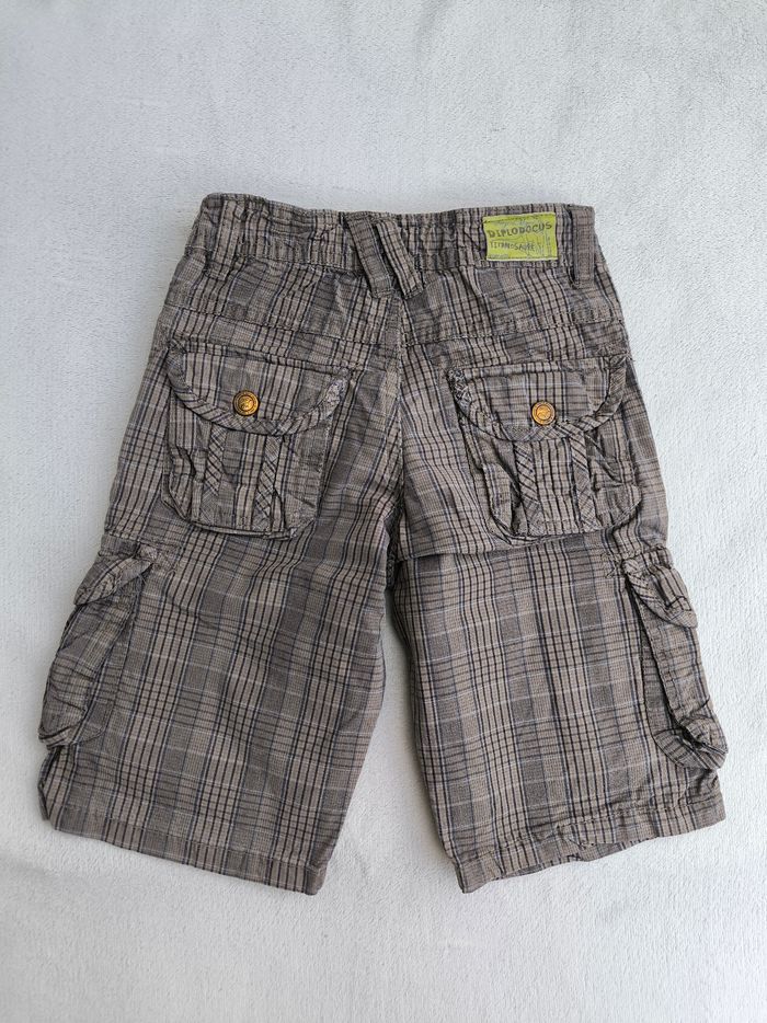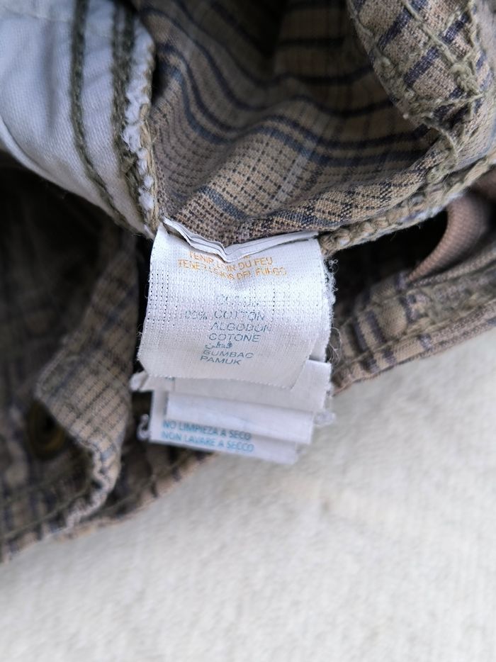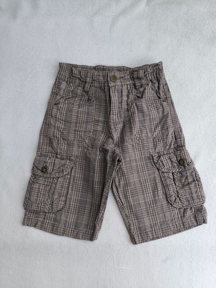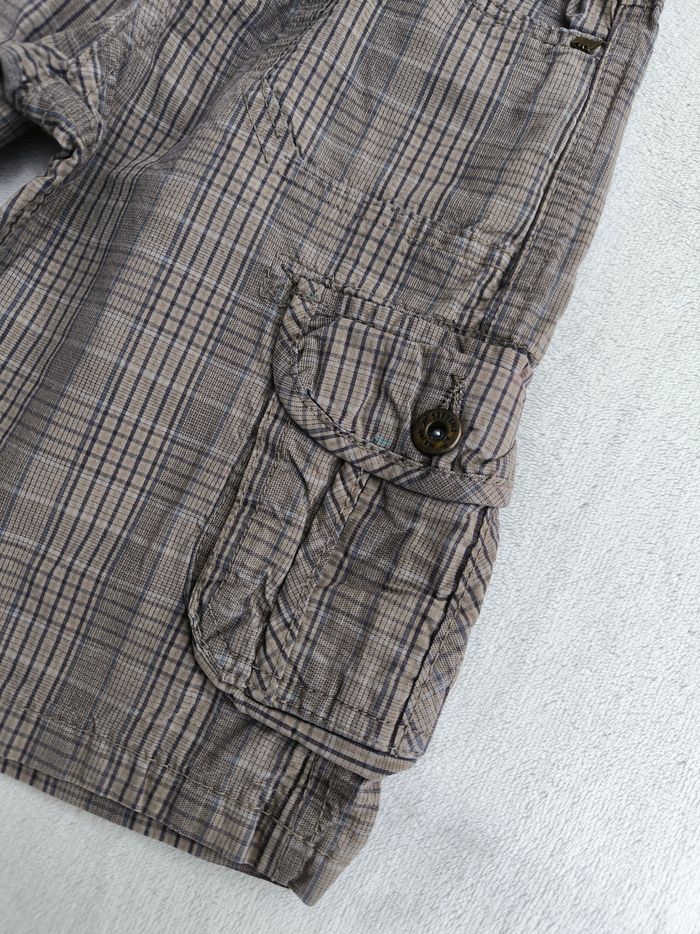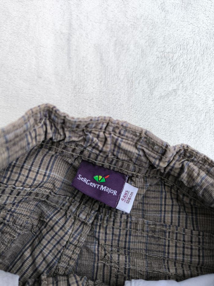 Short/Bermuda Marque Sergent Major Taille 4 ans, 104 cm • Coloris marron, marine • Carreaux, dinosaures • Fermeture par fermeture éclair et crochet • Taille élastique ajustable • 6 poches style cargo • Coton fin • Poches arrières abîmées En bon état #evelyne_garcons_4ans #evelyne_garcons