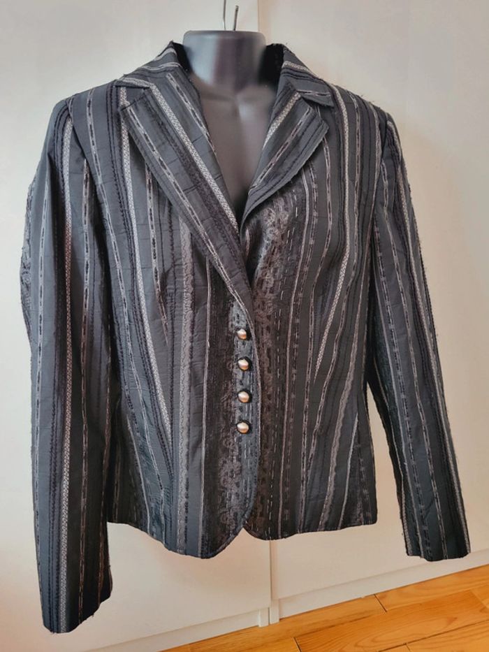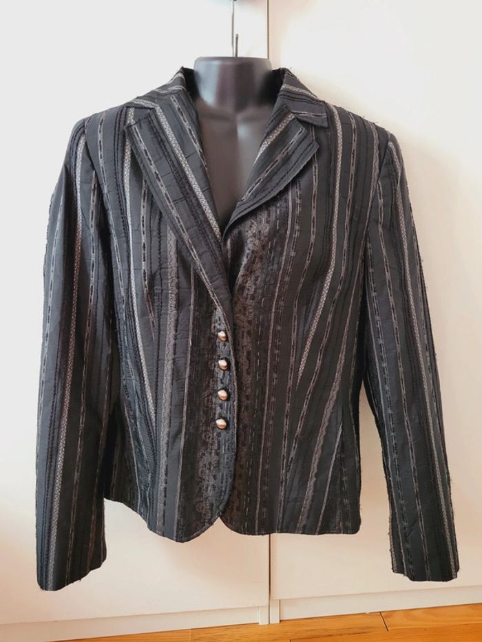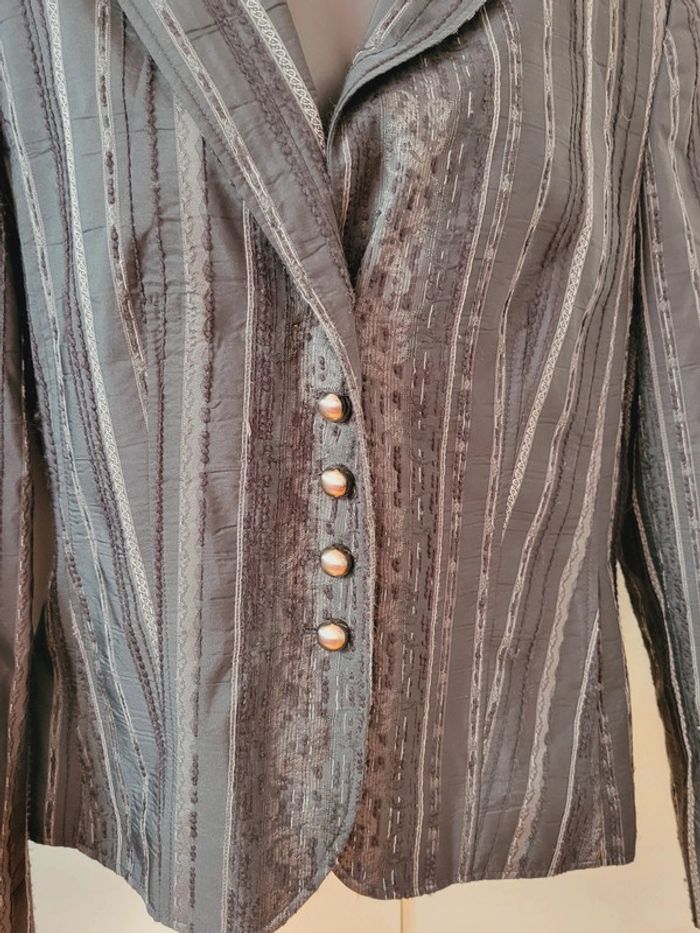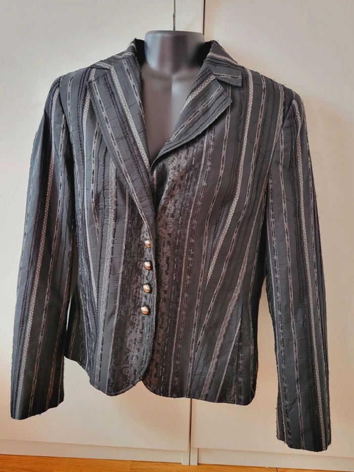 Veste Blazer vintage Geloo gris noir motifs  L/40/12 - photo numéro 5