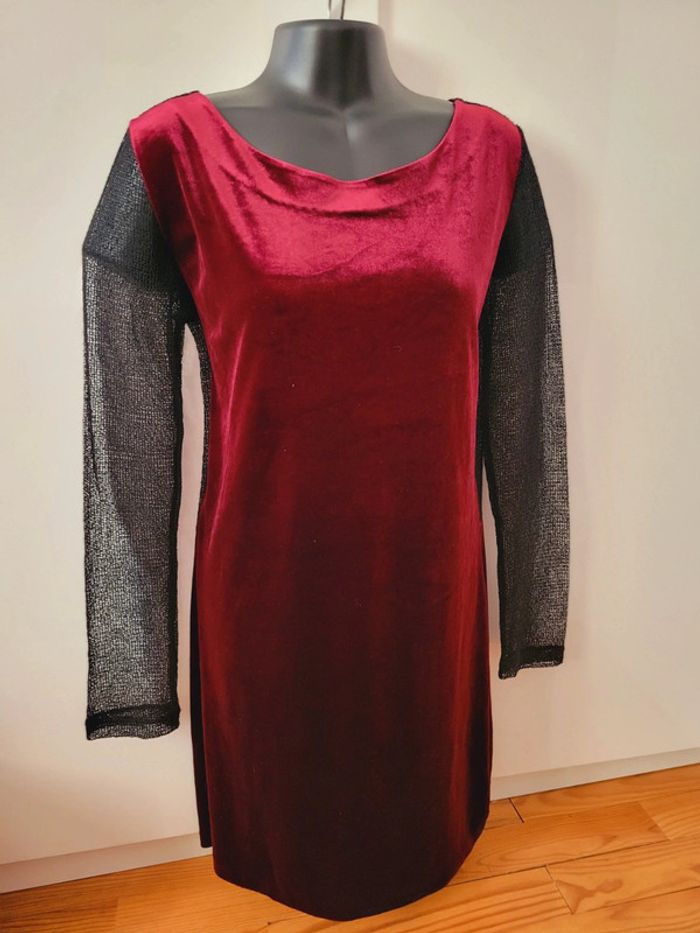 Robe velours rouge noir filet taille L 40 - photo numéro 2