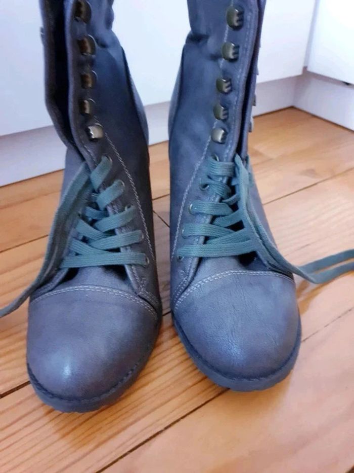 Bottes bottines Boots lacées cuir 39 Basta Zalando Bottes bottines lacées femme Basta couleur taupe. pointure 39, talons, lacets, chaussures montantes. Portées 1 journée seulement, talon malheureusement trop haut pour moi. Etat neuf. #gothique punk. Arrivent au dessus du mollet