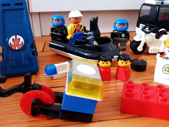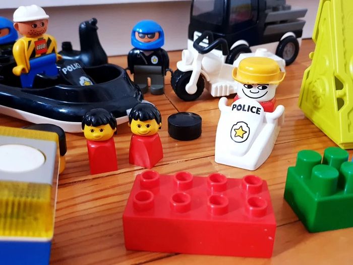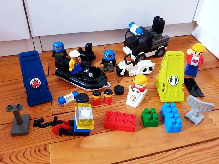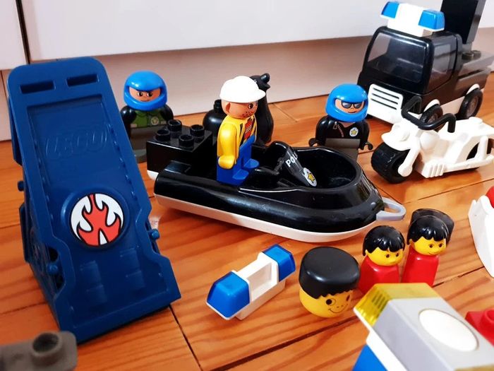 Gros Lot Lego Mega blocks personnages véhicules Des personnages, des voitures bateau zodiac camion police moto ...