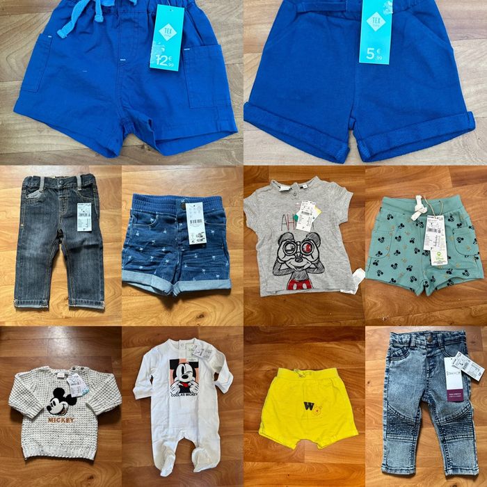Lot de 10 vêtements garçon dont 9 Neuf avec étiquette Taille : 9 mois Marque : Disney , Kiabi , tex Négociable #9moisgarconkellyz33