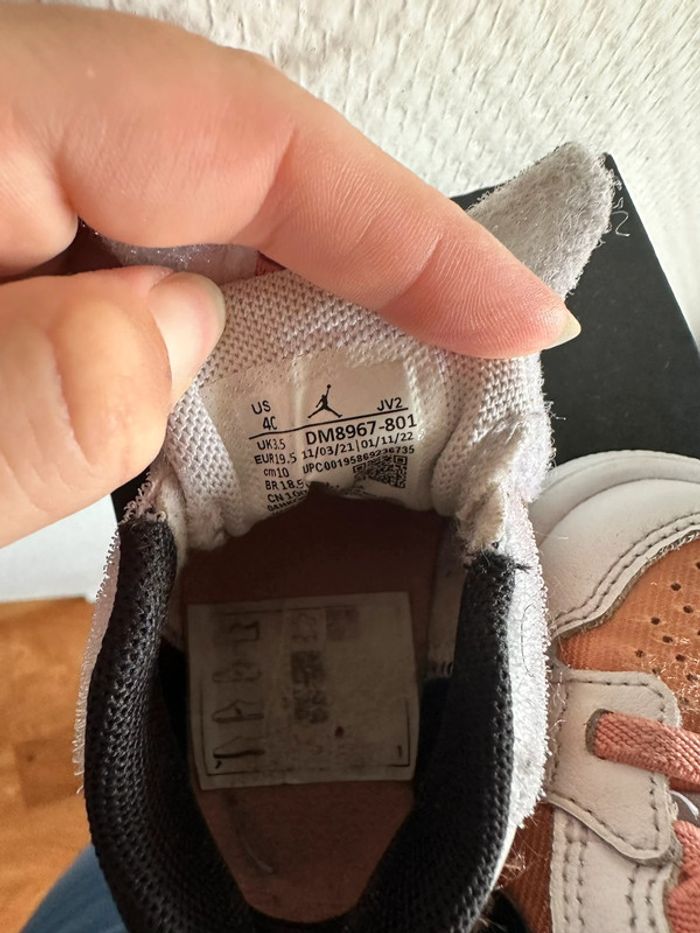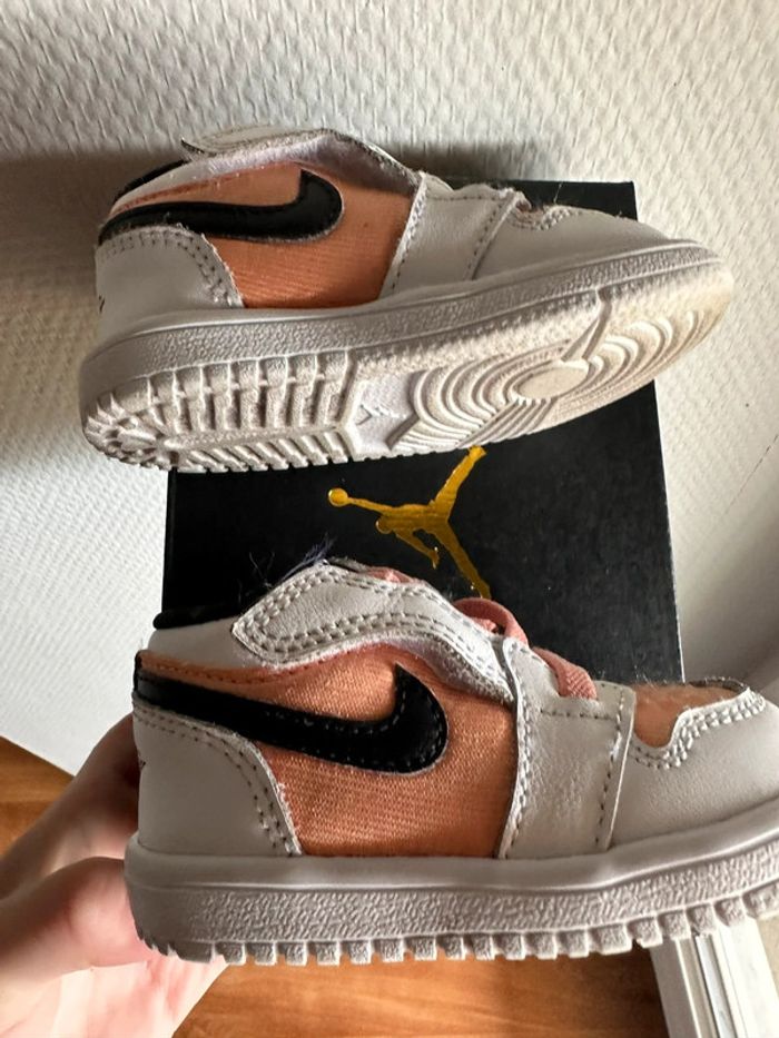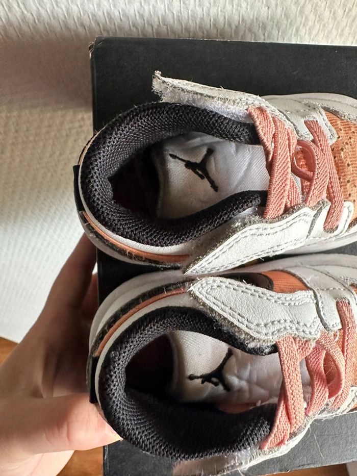 Basket/ Sneakers Jordan 1 low white and Light Madder Root' ( rose saumon et blanc). Très bon état ou bon pour certains. la languette et lacet taché, je peux essayé de les détacher. Taille 19,5 / 4 us Réf: DM8967-801 Acheté : 59,99€ sur Nike