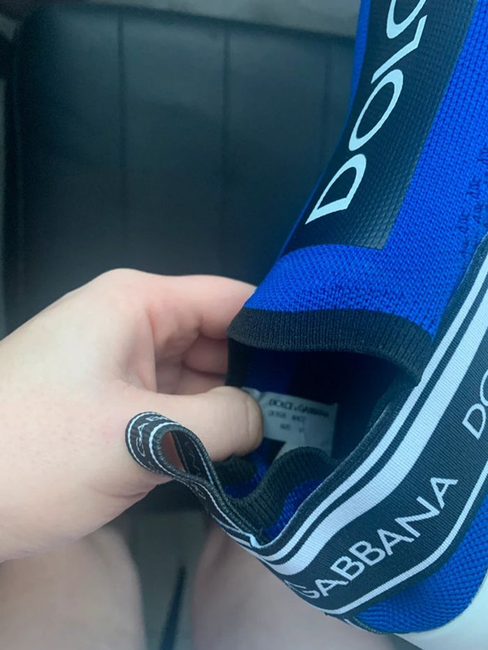 Basket / Sneakers sorrento en maille stretch à logo Dolce & Gabbana en tres bon état mis 2 fois une petite trace bleu sur le bloc blanc voir photo . Authentique vendu avec facture, carte authenticité, sac, dustbag acheté au galerie Lafayette saint honoré. Actuellement en vente à 595€ Taille : 37