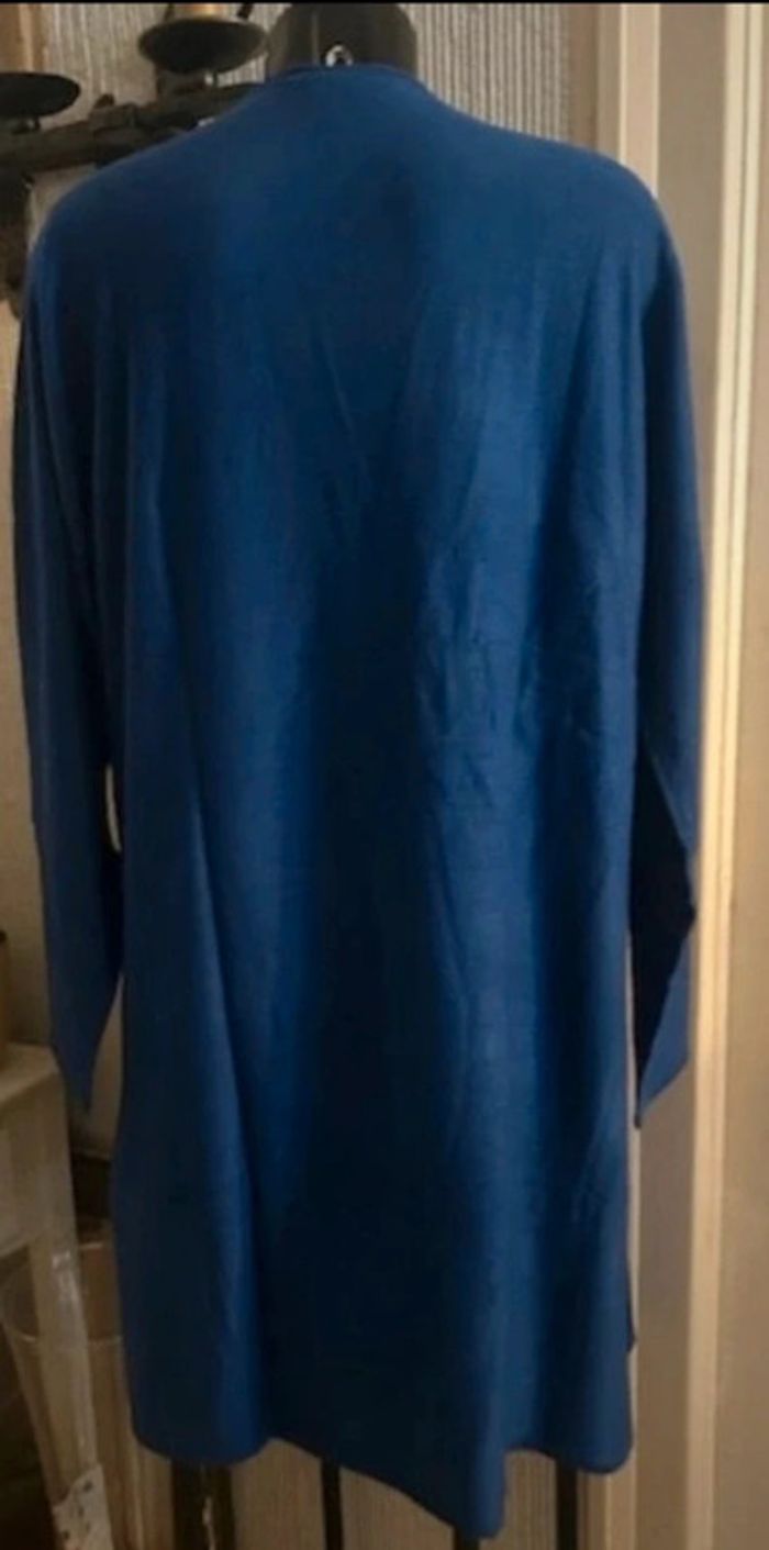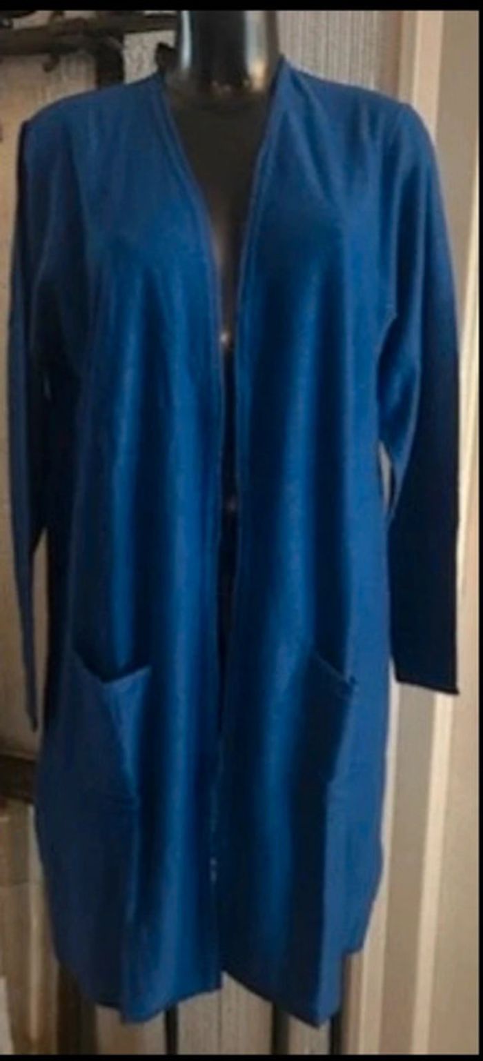 Manches longues  2 poches devant  Base droite Long. 93 cm env. Composition : 100% acrylique toucher cachemire Taille : 42/44 Coloris : bleu Prix : 19€ Neuf jamais porté #sisterkayafemmeT42 Réf : c.ii +1