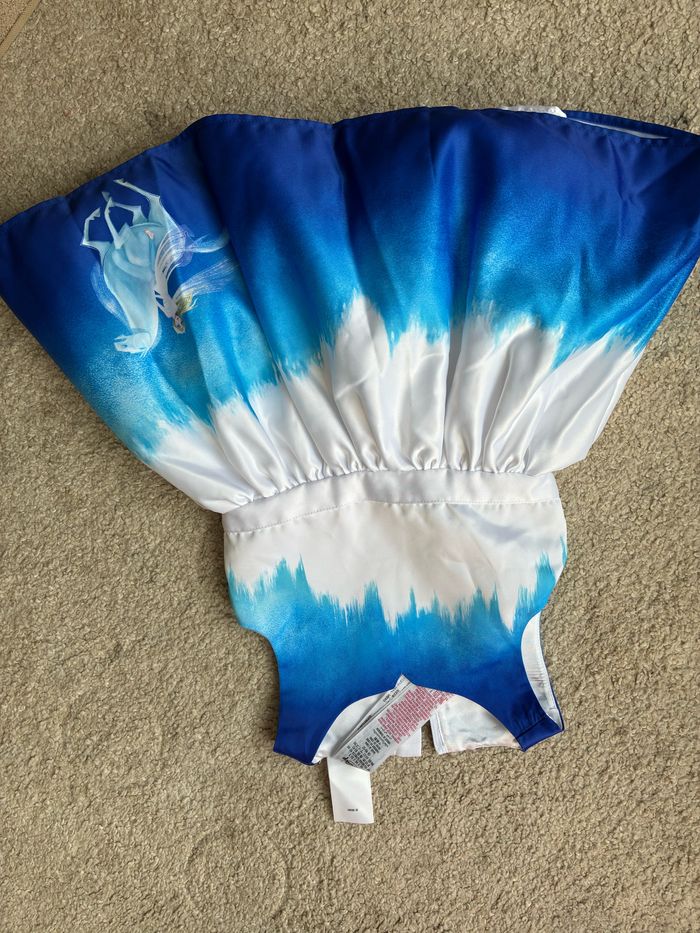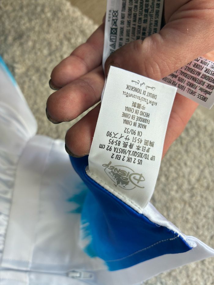 Robe de chez Disney la reine des neiges bleu et blanc avec à reine des neige sur son cheval sur la côte en bas de la robe taille 2 ans très peu portée