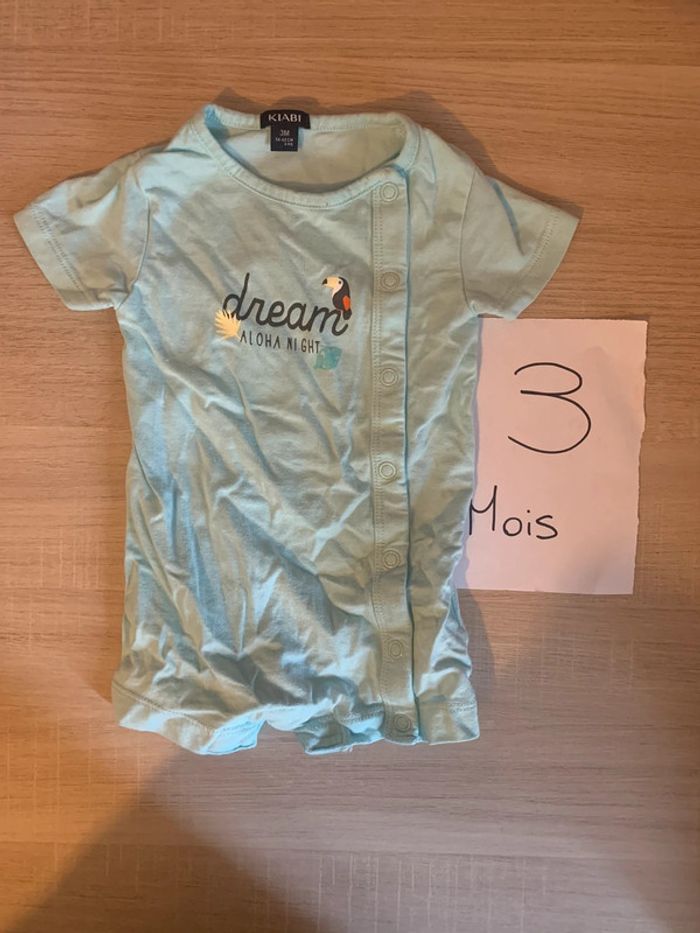 Grenouillère ou body 3 mois. Attache devant. Manche courte