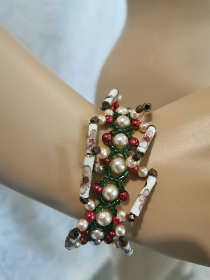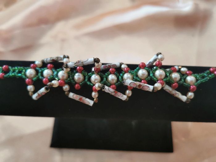 Bracelet. Blanc. Rouge. Vert. - photo numéro 3