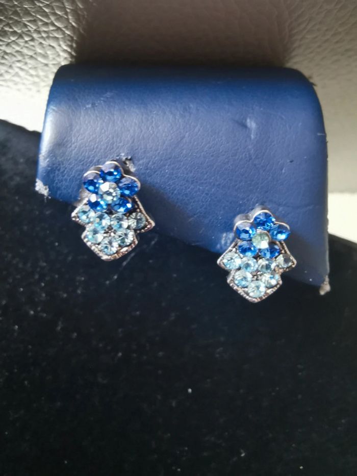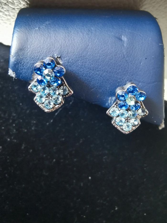 Boucles d'oreilles. Bleu. Strass - photo numéro 1