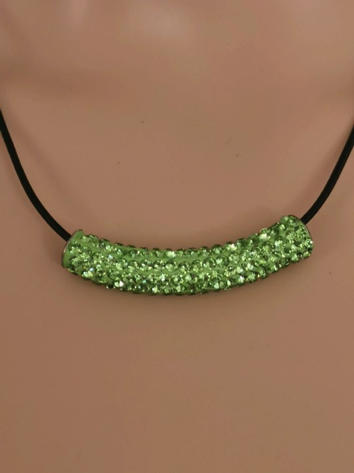 Collier.Vert. Cordon cuir noir. - photo numéro 1