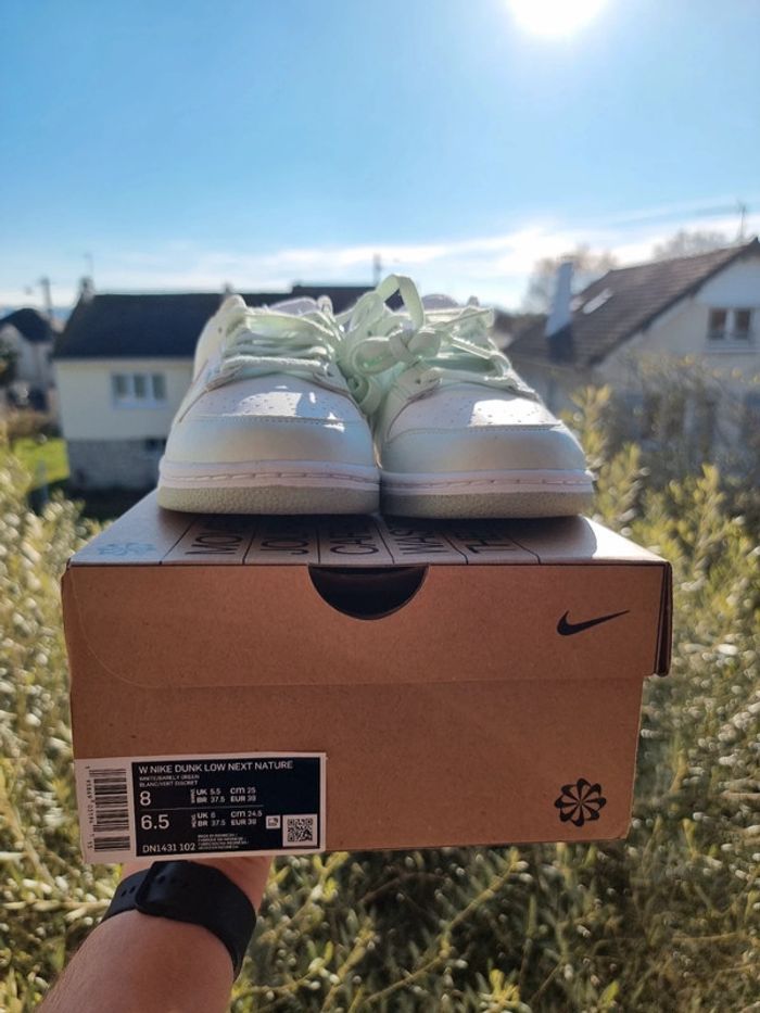 🏷 Nike Dunk Low Next Nature White Mint ✅️ Authentique ✨️ Neuf, jamais portée 📏 Taille : 39 EU / 8 W US / 6.5 US 📄 Avec facture (DM) Condition : deadstock 📦 Ship : double box 🚚 Envoi rapide -48h 🤝 Négociable pour les abonnés