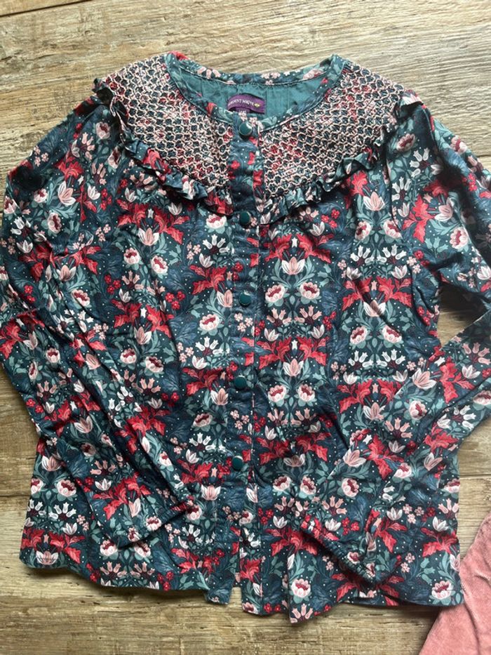 Blouse 7 ans , teeshirt 7 ans et pantalon 6 ans.