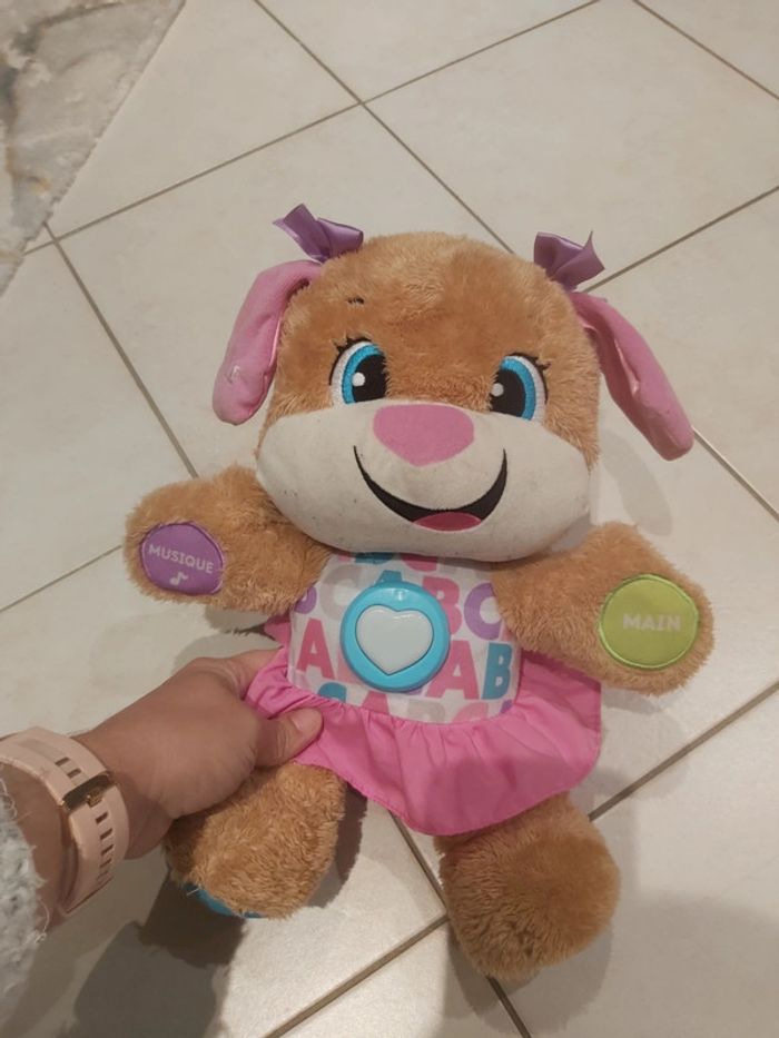 Sis est si douce et si câline ! Avec elle, apprendre est tellement amusant ! Sis réagit au toucher de votre bébé en chantant des chansons et en prononçant des expressions comprenant plus de 100 mots pour lui apprendre les parties du corps humain, les couleurs, les formes et bien plus encore. Et parce que chaque bébé grandit à son propre rythme, la technologie Éveil Progressif de Sis vous permet de choisir le niveau le plus adapté à votre enfant. Plus de 75 sons, chansons, mélodies et phrases ! La main, le pied, l'oreille et le cœur lumineux de Sis réagissent au toucher de bébé (5 points d'activation en tout !) Apprend à bébé 100 de ces premiers mots et l'initie aux parties du corps humain Maison non fumeur et sans animaux Possibilité de prix selon quantité en lot D'autres éléments bébé visible dans mes annonces Retrait possible à la Celle St Cloud (78170) près du Chesnay Rocquencourt (78150) ou st maur (94) Ile de france #christinavoyage_jouet #christinavoyage_6moisgarçon #christinavoyage_6moismixte #christinavoyage_6moisfille