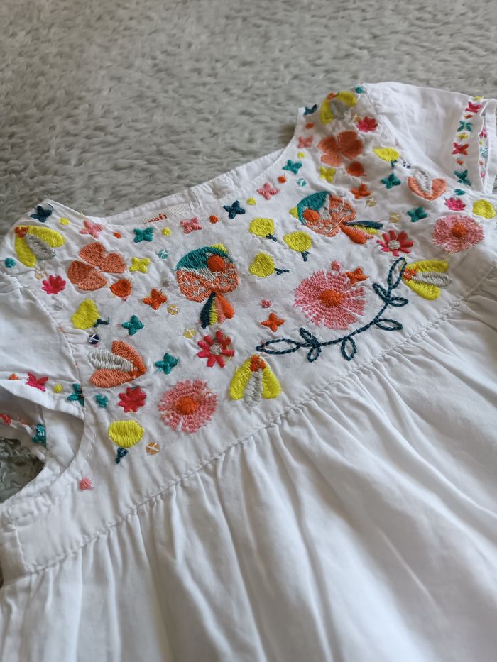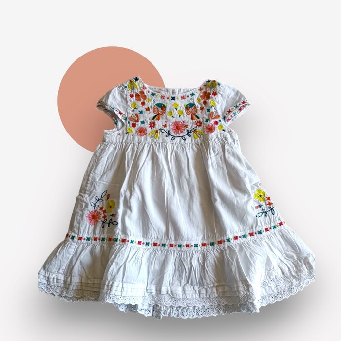 Magnifique Robe ethnique taille 18mois robe légère. Manches courtes, avec ses broderies colorées, ses sequins et ses jeux de fronces. Finitions du bas de la robe par des jeux de plis et une jolie broderie anglaise pour encore plus d'élégance. Entièrement doublée. Entièrement boutonnée au dos. Pensez à faire des lots les remises sont activés. Dressing moderne et à petit prix.