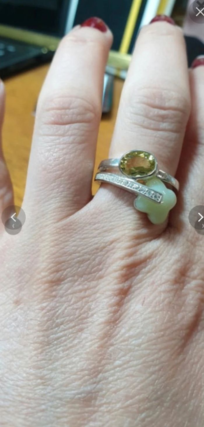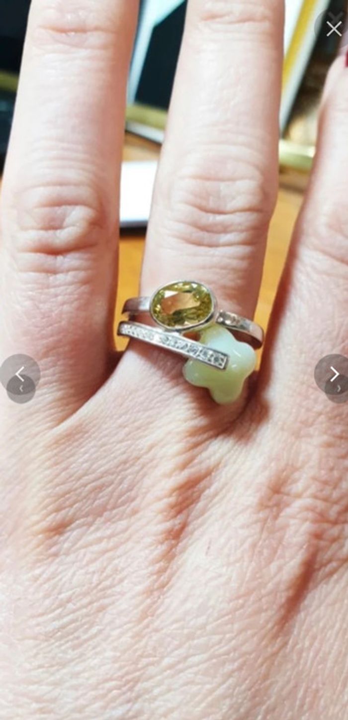 Neuve!!! Très jolie bague argent 925, pierre véritable, fleur Prix en forte baisse !!! Prix de départ a 98€ 🙂🙂👍👍 Très jolie bague en argent véritable 925, avec des pierres véritables ( la translucide est une pierre appelée quartz lemon) , fleur en pierre mais j'ai oublié le nom ( du jade peut être mais j'ai un gros doute ) Prix boutique : 155€ Il y a également des oxydes de zirconiums A offrir ou à s'offrir pour toutes sortes d'occasions Tailles au choix 53/54/55/56/52/58 #anniversaire #noel #fêtes #saintvalentin #olivine #bague #53/54/55/56/52/58 #402724644 #vanessa2626 #bague #bijou #bijoux #pierre #quartz #vanessa2626fille #vanessa2626femme #femme #chic #luxe #vanessa2626bijou #robes #jupes #vestes #bottes #bottines #pantalons #vanessa2626bague