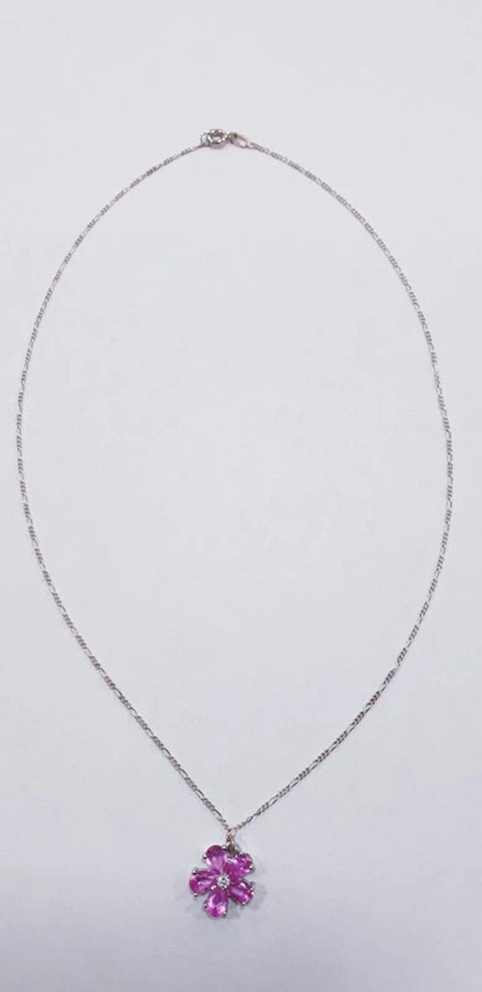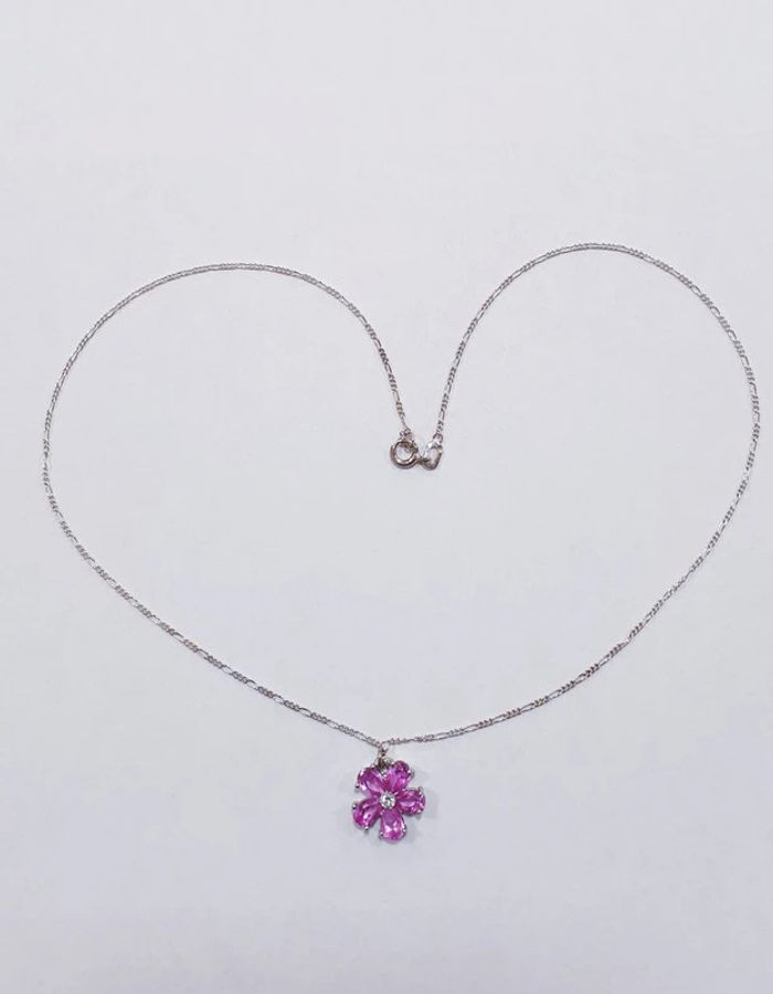 Magnifique Collier neuf en argent avec pendentif intégré en argent et un oxyde blanc et plusieurs oxydes teintés rosés. En forme de fleur #vanessa2626 #vanessa2626collier #collier #vanessa2626bijou #vanessa2626bijoux #bijou #bijoux