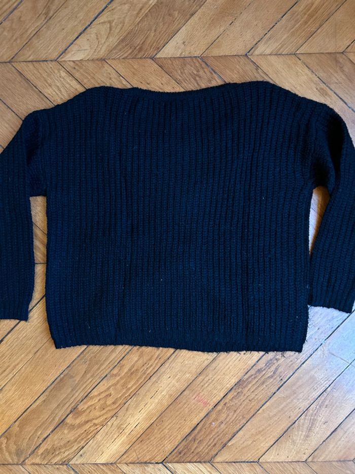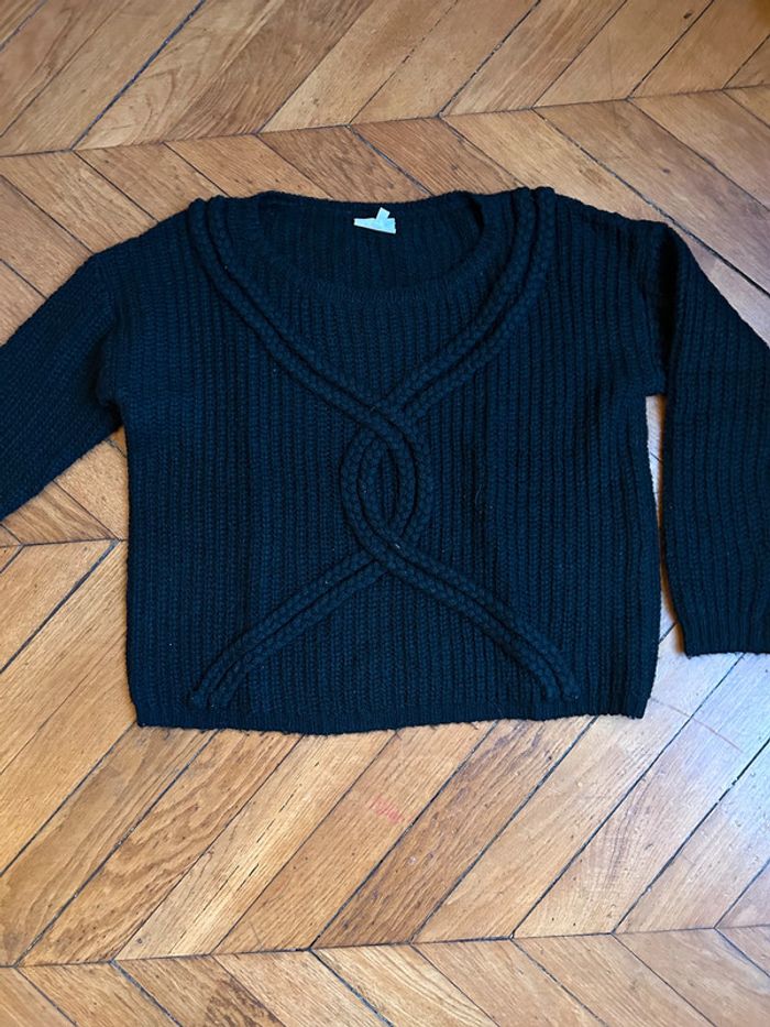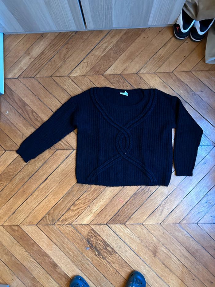 Magnifique Pull chaud oversize en taille 2, équivalent à une taille 38/40. 50% en laine. De couleur noir. ( i'ai mis une photo où il parait bleu mais c'est simplement pour pouvoir mieux voir les motifs sur la photo) Très agréable. À porter avec un jean pour un style classe et décontracté. #vanessa2626 #vanessa2626belair #belair #bel-air #vanessa2626belair