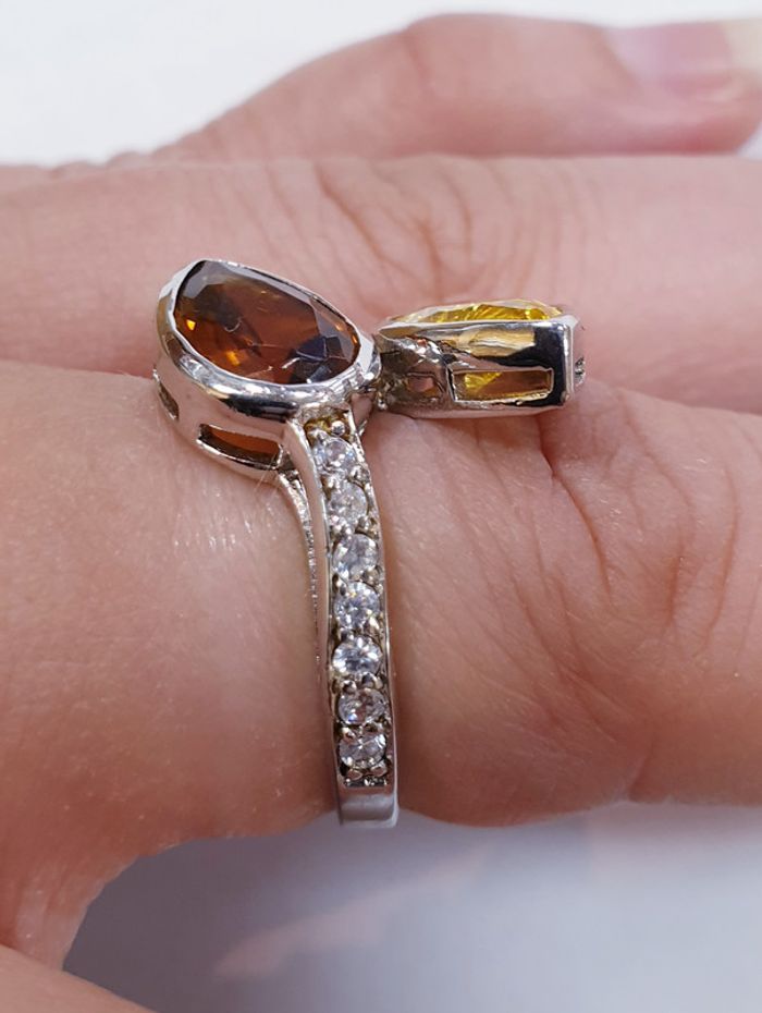 Sublime bague en argent massif pierres jaune et marron - photo numéro 1