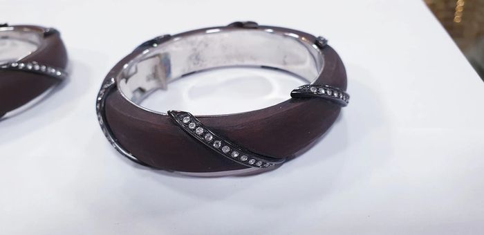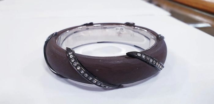 Neuf! Magnifiques bracelets en resine bois/ argent 925/ zyrconium - photo numéro 1