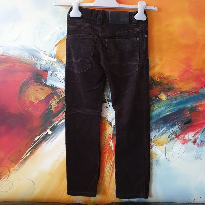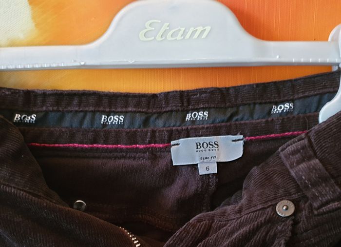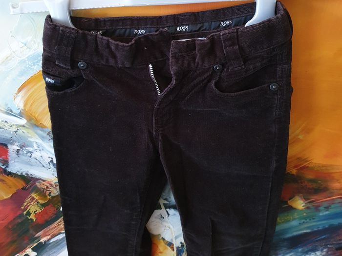 Pantalon marron de la marque BOSS en taille 6 ans. Il est en très bon état mais il lui manque le bouton du haut qui ferme le pantalon, il faut donc en remettre un. Pantalon style jean slim fit velour #vanessahmypantalon #vanessahmyboss #vanessahmygarçon #vanessahmygarçon6ans #vanessahmypantalonmarron #vanessahmypantalonmarron