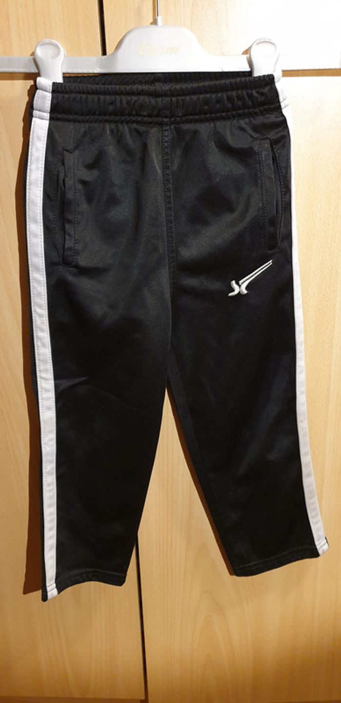 Jogging noir à bande blanche droit Scott&fox Taille 3/4 ans. Apparement il y avait une sorte de ficelle dont je n'ai aucun souvenir. Mais certainement d'aucune utilité car le jogging s'adapte parfaitement à la taille de l'enfant et le tien bien. Bon etat general. Les côtes ne sont pas aussi blanc qu'à l'achat mais portè ca ne se remarque pas.