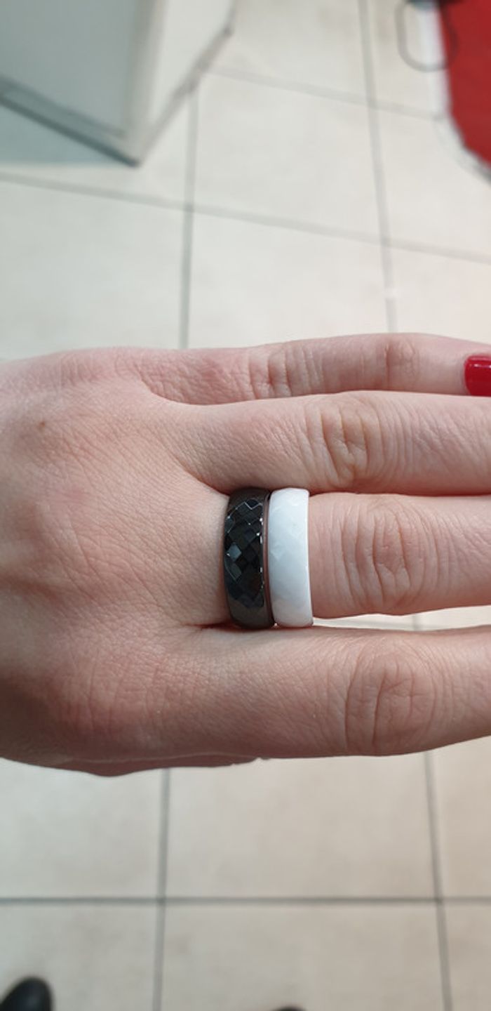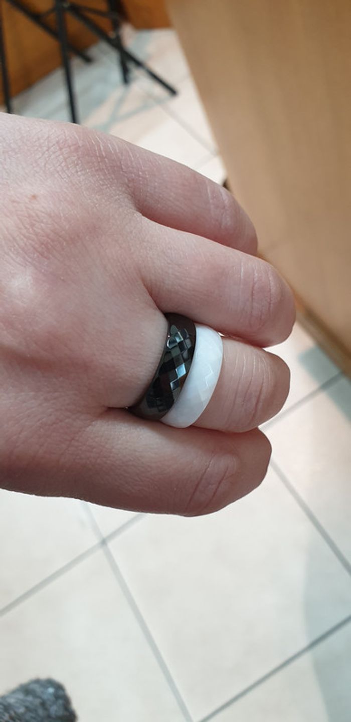 Superbe bague en céramique noire facetté. Bague comme en pierre donc il faut etre soigneuse. T56 mais taille petite donc environ 54/54,5 ( tiroir/font/ toile..) et taille 50 donc 48,5! Hauteur 0,5/0,6 cm Existe aussi en blanc. Une a 14€ les 2 pour 25,5€ #vanessahmy #vanessahmybijou #vanessahmybague