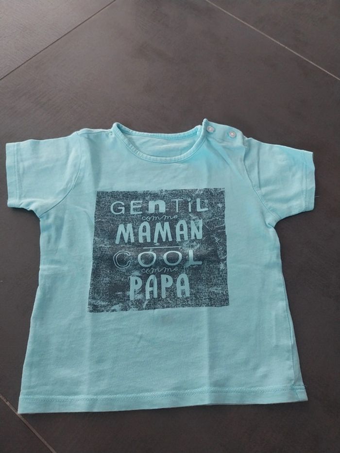 T-shirt bébé 18 mois turquoise gentil comme maman cool comme papa - photo numéro 1