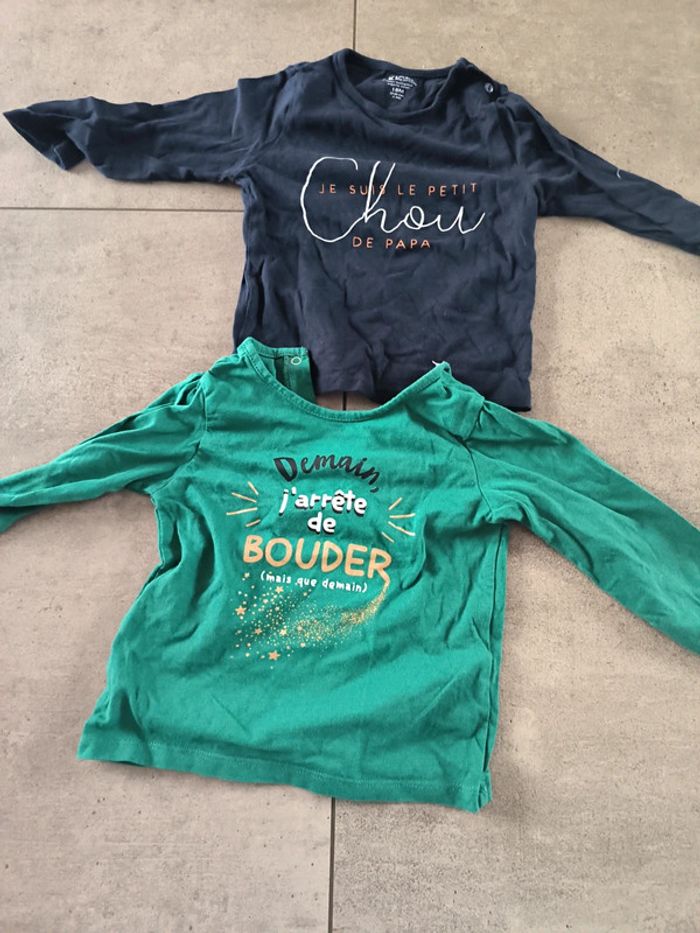 Lot tee shirts manches longues Kiabi : 18 mois + Gémo 18 mois Très bon état