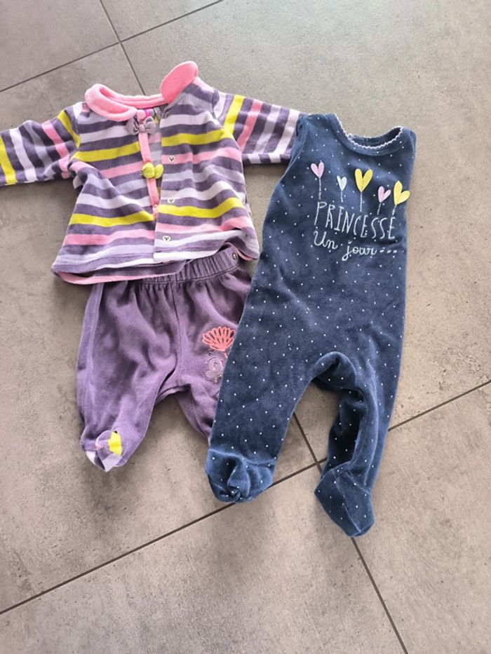 Lot de deux pyjamas fille : un pyjama 2 pièces marque Orchestra et un pyjama 1 pièce marque Gémo Taille : 1 mois Très bon état